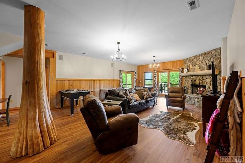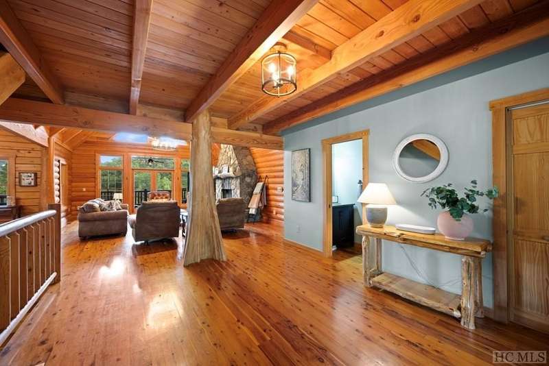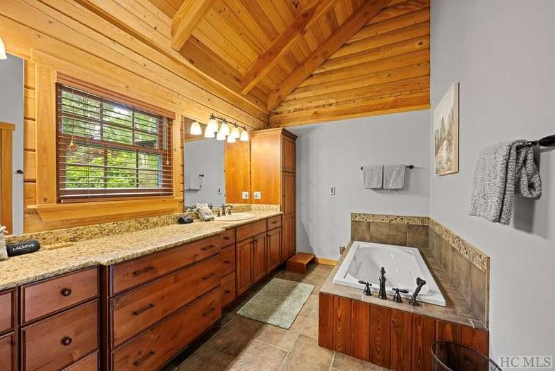 Introducing 'The Lookout' - a magnificent, luxury lodge-style haven nestled within the coveted Whisper Lake community. This stunning log home epitomizes the essence of Sapphire living, offering modern, rustic comfort and sophistication. As you approach 'The Lookout,' you'll find yourself captivated by its private serene setting featuring a garden area encircled by an easy in, easy out half moon driveway. Step inside to discover a welcoming ambiance, where cathedral ceilings and a majestic stone fireplace exude rustic charm. The main level presents a sumptuous primary suite with a soaring ceiling and dual walk-in closets, a spacious open kitchen, a dining area with access to the deck and grilling area, a powder room, and a practical laundry/mud room leading to the garage via a covered carport/breezeway. The covered and screened decks provide ideal spaces to revel in breathtaking Blue Ridge vistas, host al fresco gatherings, or simply unwind with a glass of wine and a book. The upper-level loft provides bonus space for a study or office. Descend to the lower level, where you will find two additional bedrooms, two bathrooms, a fully equipped kitchen, and another inviting stone fireplace complete with gas logs, perfect for cozy evenings. Entertainment options abound, with a bonus room, gaming area, and a covered deck featuring an inviting hot tub. A new roof was installed in 2023, and a generator provides convenience in all weather conditions. Beyond the confines of 'The Lookout,' Whisper Lake offers exclusive access to a private lake for a variety of water activities, while ownership grants privileges to Sapphire Valley's amenities such as golf, tennis, fitness facilities, and indoor/outdoor pools. Moreover, high-speed fiber optic internet is already installed in this community. This exceptional property is being delivered turnkey and fully furnished, and it promises an unparalleled mountain lifestyle in the heart of Sapphire.