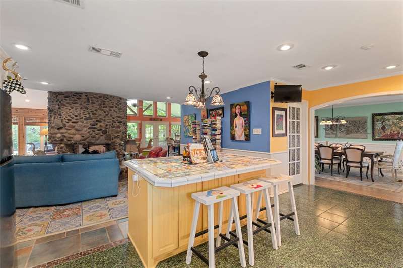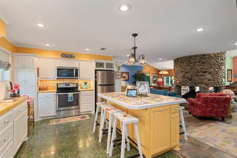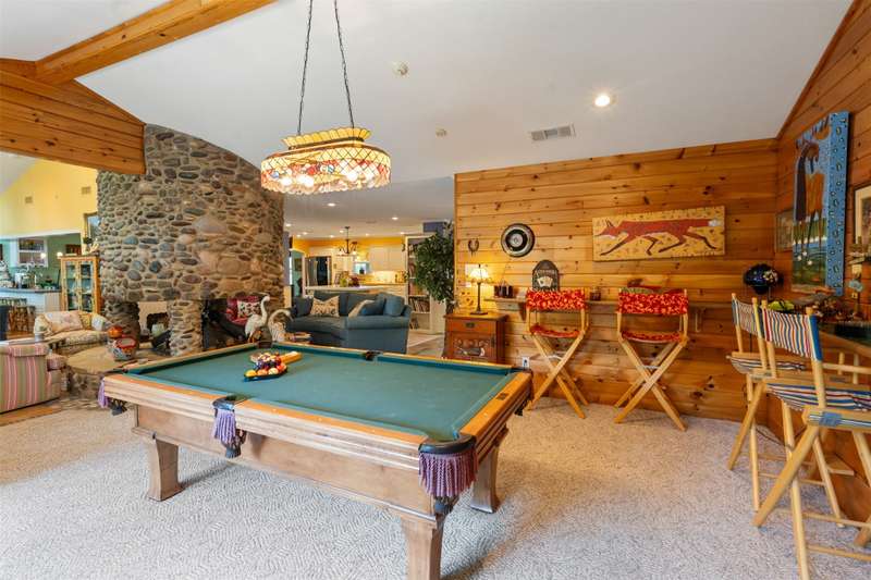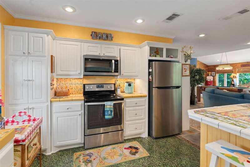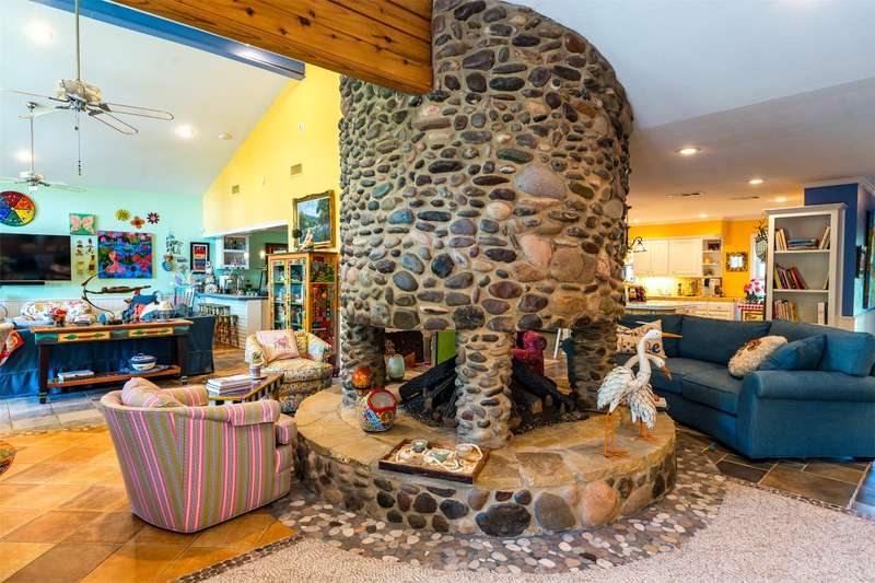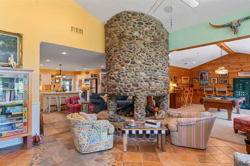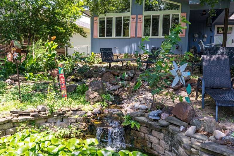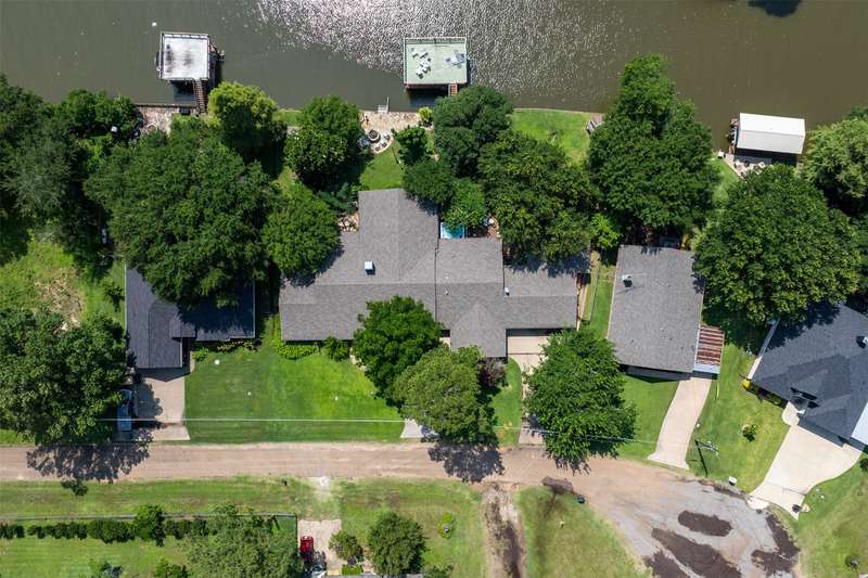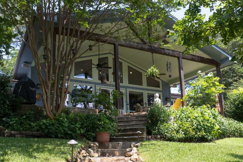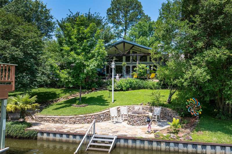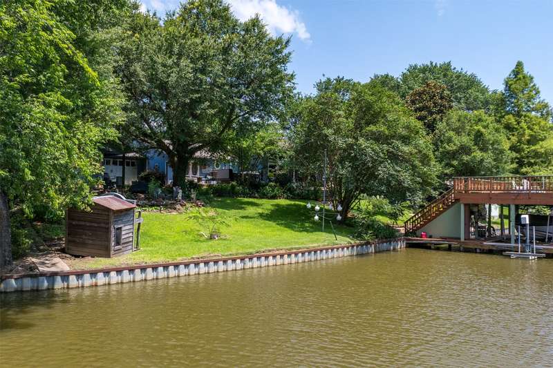 Escape to your own Lake Paradise in this large home on Cedar Creek Lake, made for entertaining family and friends. This 3743 sf home sits on two lots and was built from set-back to set-back. 160' of shoreline gives a large backyard with many places to enjoy. Look over the lake by the fire pit, on the boat dock, or cool off under the huge oak tree by the 3 level koi pond. The home has a large stone deck (no maintenance) with a dining space and covered rest and relax area. The home has a great floor plan with the primary bedroom on one side, and 3 guest rooms on the other end of the house. In the center, is the heart of entertaining, with a great room with expansive windows, and a game room with pool table and attached bar area. The eye popper of the great room is the circular stone fireplace visible from all the spaces... it's lights with a twist of a button with propane and artificial logs. Surround sound equipment and TVs throughout the house will stay. The kitchen is bright and colorful with an island that seats up to 8, lots of storage, and 2 refrigerators. The wet bar has a beverage refrigerator, sink and divides the great room and dining room. The primary bedroom is a large suite with a fanciful bathroom, with separate shower and tub. French door access to the swim spa on the back trek type deck. Separate living area by the primary bedroom is at the porte cochere entrance. Separate 593 sf room on the other side of the garage with water and electricity. RV hookups in front of Studio. Boat dock has electric lift (with remote) for boat, and an electric lift for jet ski. Home in a channel right off the open water, so safe for swimming and great bird watching. Saloon style playhouse, and shed. Irrigation system from lake. This home has been in the same family for over 20 years, and it's time to share this lakeside haven with another family. TURN KEY. Spend the holidays around the fireplace with your loved ones. One of a kind on Cedar Creek Lake.