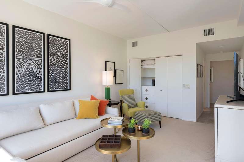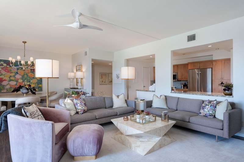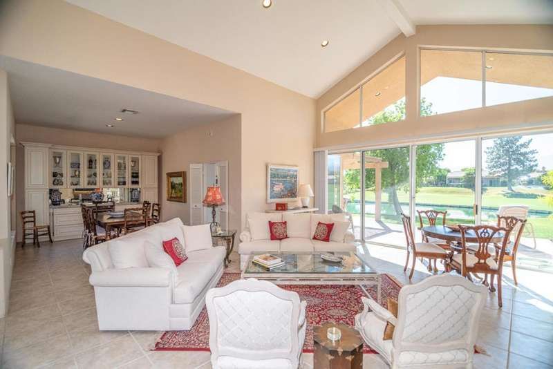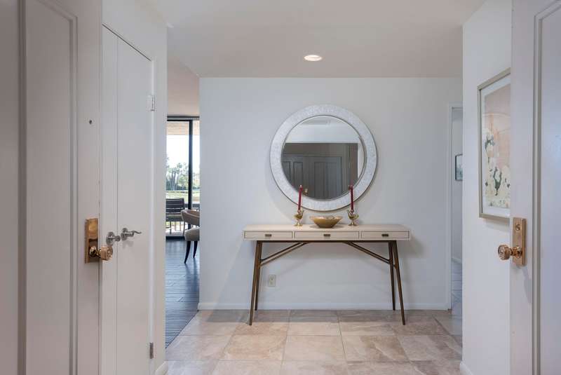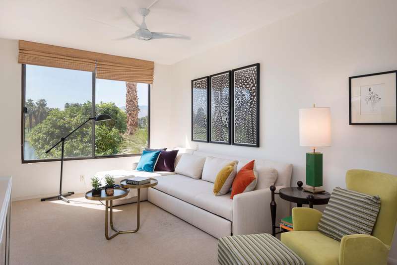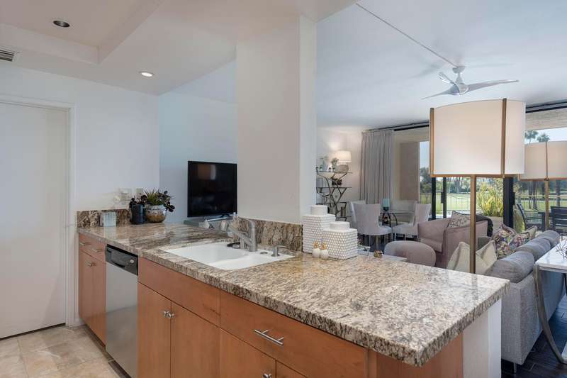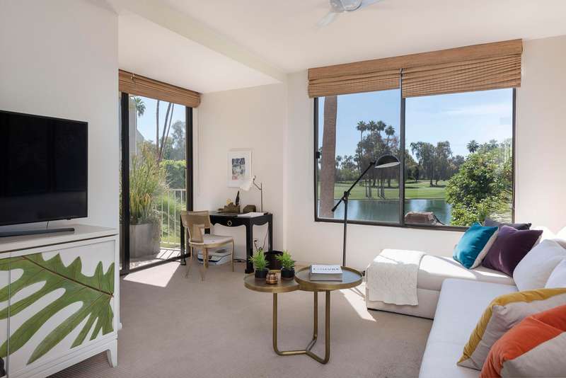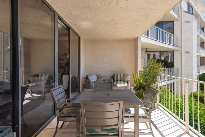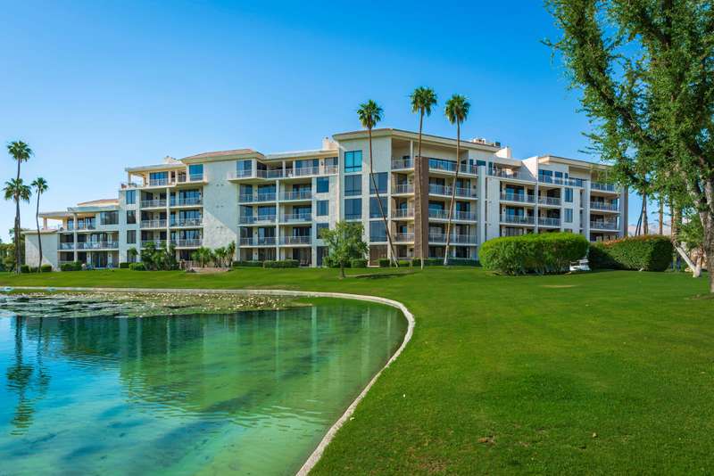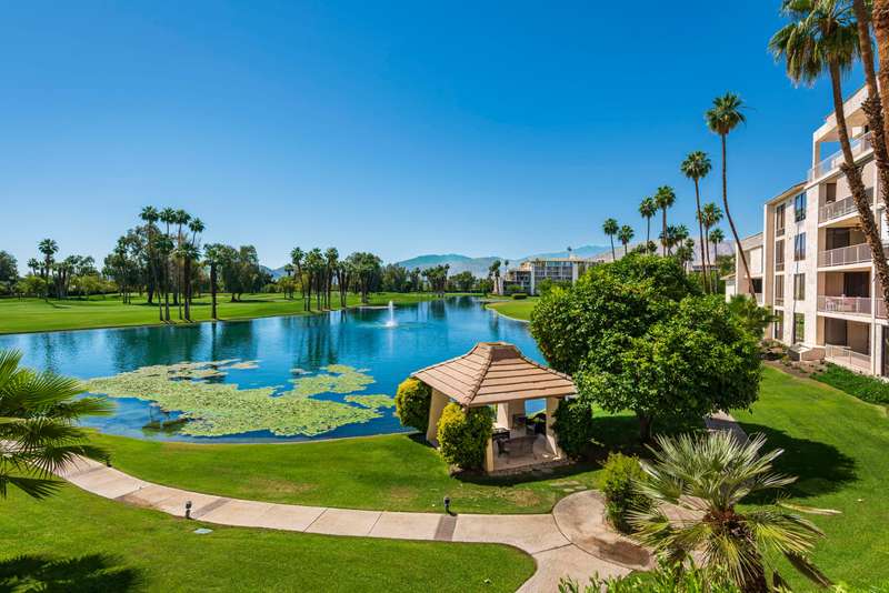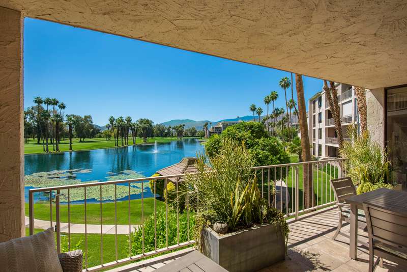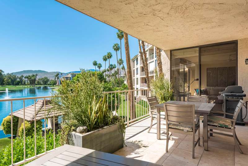 Fabulous Desert Island, a unique high-rise condominium community nestled on a lush green 25-acre island, surrounded by a sparkling lake and immaculate private 18=hole championship golf course. 226 units are located within three high-rise concrete and steel buildings with floor to ceiling windows. Picture yourself in a beautifully remodeled, 2nd floor, move ready, lake-front home. Absolute paradise. Gorgeous kitchen with light wood cabinetry, granite counters, stainless steel appliances. Large master bathroom has large walk-in shower, dual sinks, granite counters, plus more. Relax or entertain on the beautifully tiled terrace gazing out down the length of the sparkling lake with views of the Santa Rosa mountains while enjoying morning sun and afternoon shade. Owner would prefer a 4 month rental November - April. Call now to book youru stay!