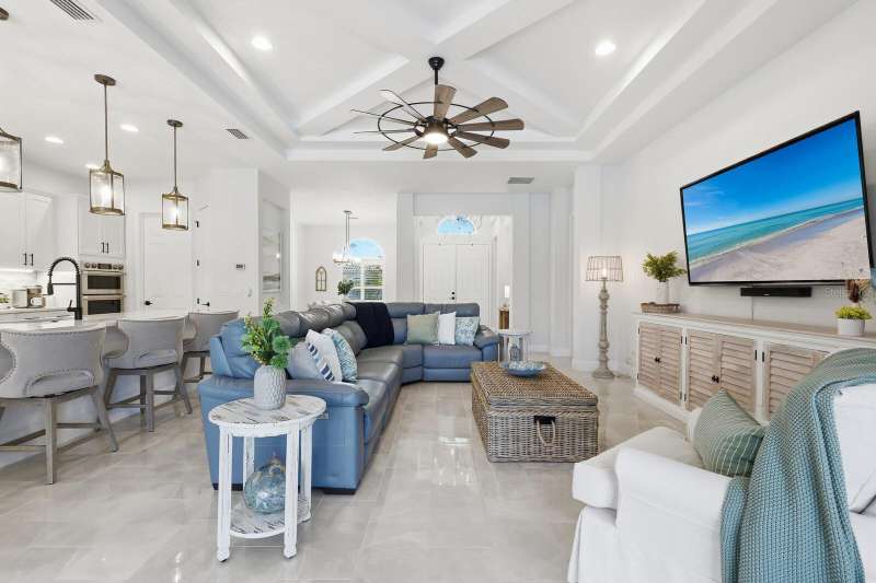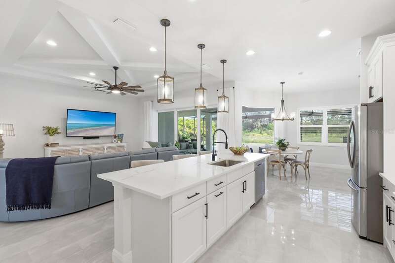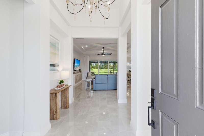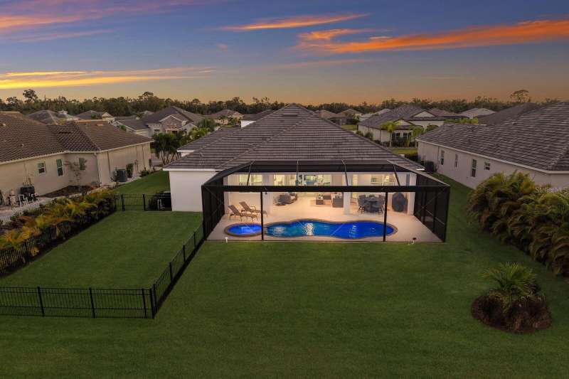Sophisticated. Serene. Smartly designed. Welcome to the EXTENDED Aruba by Medallion Home, an exquisitely designed 2023-built residence featuring IMPACT-RESISTANT WINDOWS and SLIDERS, crafted for those who appreciate both elegance and peace of mind. This 3-bedroom, 3-bath home WITH a den/office offers a stunning open-concept layout, blending modern design with functional living and no carpet. The heart of the home — a spacious great room — flows seamlessly into the gourmet kitchen, where stainless steel appliances, quartz countertops, solid wood Kraftmaid cabinets, and an oversized island with seating invite both culinary creativity and conversation. Enjoy your morning coffee while watching for the local deer in the bright breakfast nook, highlighted by an aquarium window that bathes the space in natural light. The owner’s suite is a private retreat occupying one full wing of the home, featuring a 14' x 15' den, dual walk-in closets, and a spa-inspired ensuite with an oversized walk-in shower, dual vanities, and a private water closet. From the owner's suite you can step through French door to your private pool and spa, overlooking a tranquil pond AND preserve — a forever view, with no homes ever to be built behind you. The extended covered lanai, pre-plumbed and wired for an outdoor kitchen, is perfect for alfresco dining and entertaining. Situated on an 85-foot-wide homesite, this property offers space, privacy, and a true sense of sanctuary. Beyond beauty, this home delivers performance and peace of mind: impact-resistant windows and sliders provide storm protection, energy efficiency, and lower insurance costs — all while reducing outside noise. This home has had over $50,000 in after-closing-upgrades including a water softener & filtration system, a Clear-View pool cage, partial fenced yard, elegant lighting/ceiling fans throughout, window plantation shutters, custom wall details, custom closets/pantry, and more. Residents of this gated community of The Reserve at Twin Rivers enjoy low HOA fees with no CDD fees, covering front gate access, internet, basic cable, irrigation water, private road maintenance, and community preserve care. Perfectly located for convenience and lifestyle with 3 Publix Super Markets within 10 minutes, UTC shopping/dining center and Ellenton Outlets within 15 minutes, I-75 and I-275 access within 15 minutes, 3 international airports within less than an hour, Major League sports (Rays, Bucs, Lightning), and a new Parrish Hospital only 15 minutes away. Don’t miss your chance to experience the best of Florida living — where modern luxury meets natural tranquility.