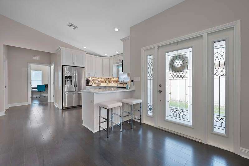The perfect escape ...in Naples Park!! This wonderful 4 bedroom beach house is just a 10 minute walk to the sandy shores of Vanderbilt Beach. Totally updated and turnkey furnished, this beautiful one story has just under 2000 sq feet. It features 3 full baths, soaring ceilings in great room, in home laundry, an amazing covered tiled patio and 2 car garage, Located in the 600 block in X500 flood zone it has all Impact windows and doors, security system All furnishings less than 5 years old with very mininal use. Never rented. Standing seam metal roof 4 years new Great place to call a permanent home, seasonal home or a fantastic rental opportunity with no HOA fees Fenced yard. The place comes with all the beach toys including everything you need to build your own sandcastle!!