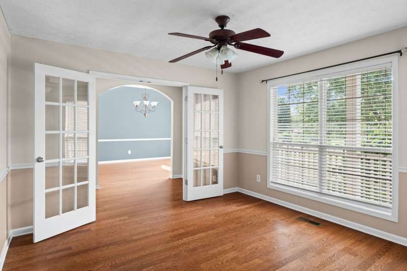 Welcome to this beautifully maintained home featuring the popular Magnolia floor plan. The newly updated kitchen showcases granite countertops and a spacious breakfast bar, ideal for casual dining and entertaining. Warm hardwood floors flow through the dining room and entry foyer, adding charm and character.The main level offers a flexible office or 4th bedroom option, perfect for working from home or accommodating guests. Upstairs, you'll find a large bonus room with double closets-ideal for a media room, playroom, or additional living space.Step outside to enjoy the huge fenced-in backyard, offering plenty of space for pets, play, and outdoor entertaining. On a quiet cul-de-sac with no through traffic, this home also provides access to community walking trails and a playground.
