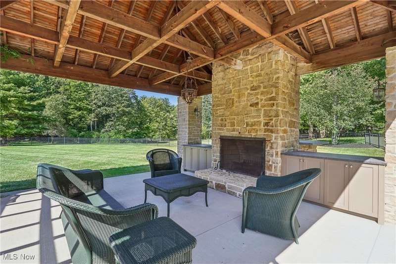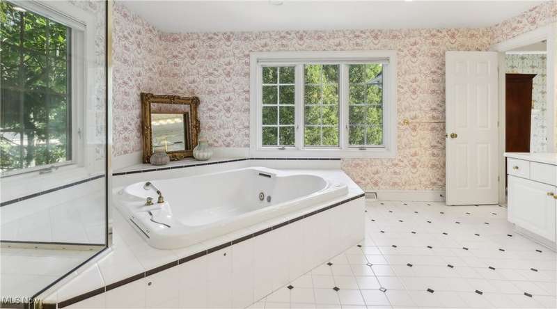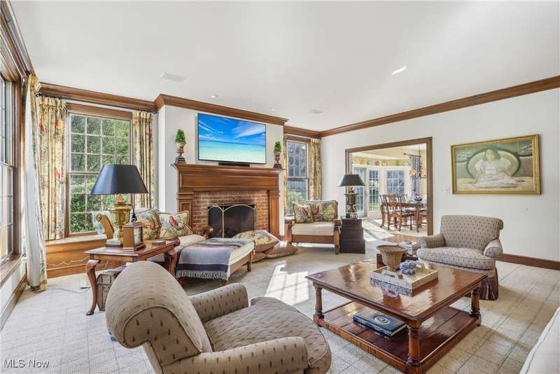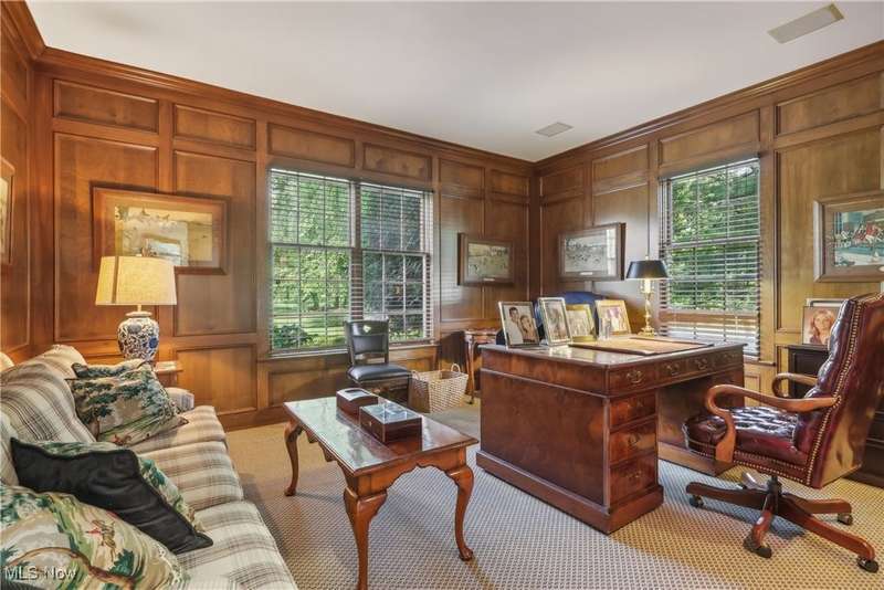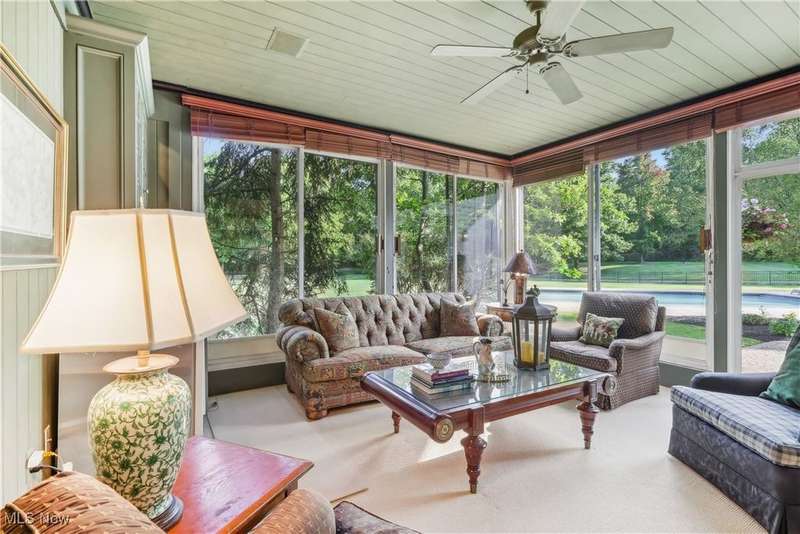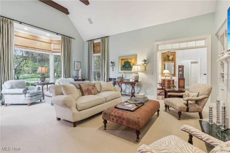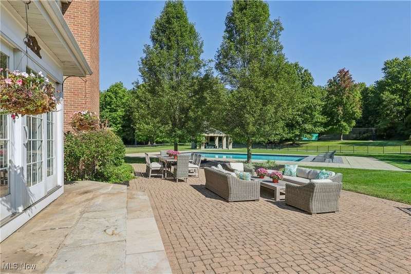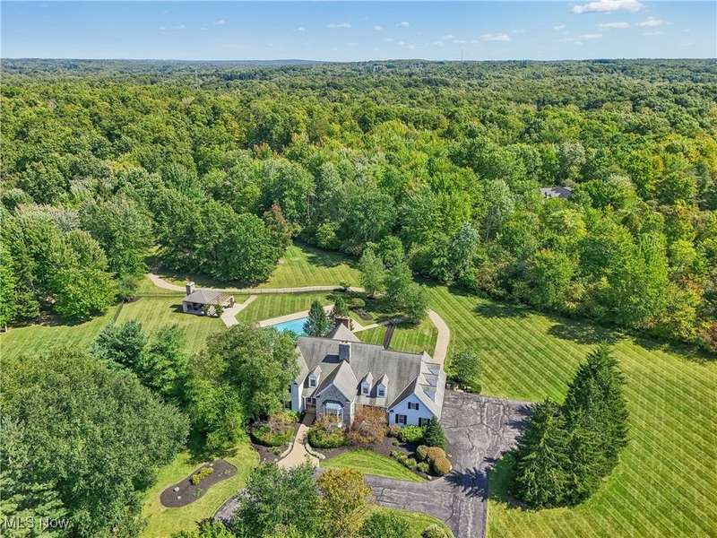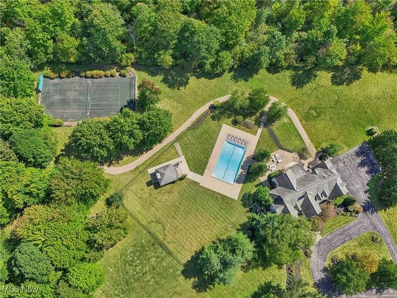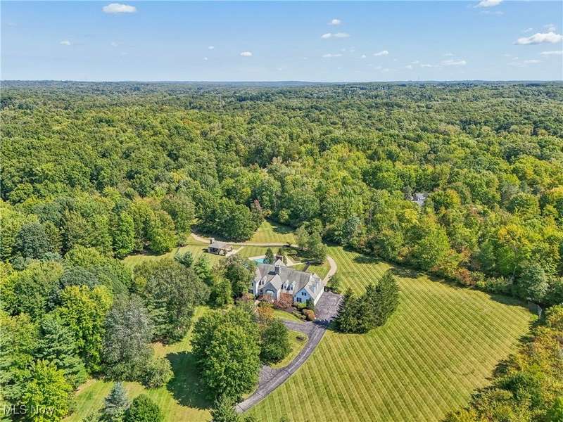 This exceptional 17-room Georgian Colonial combines timeless elegance with inviting warmth. Rich in architectural detail, the home features a gourmet kitchen, stately formal rooms, a spacious great room, a four-season sunroom, and a refined library. The luxurious primary suite includes a loft, generous walk-in closets, and a custom-designed glamour bath. The finished lower level offers versatile living space with a recreation room, nanny suite, and wine cellar. Outdoors, enjoy resort-style amenities including a pool, tennis court, and outdoor hearth area?ideal for entertaining. A whole-house generator provides added peace of mind. Set on a private, panoramic lot on a quiet cul-de-sac, this extraordinary estate is just 10 minutes from the charming Village of Chagrin Falls. A rare opportunity not to be missed!