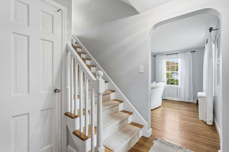 Nestled on desirable street in prime location, this charming colonial radiates warmth, character & exceptional curb appeal sitting on well-landscaped corner lot. Bathed in natural light, the inviting interiors boast a seamless circular flow. Living room captivates with arched openings, a wood-burning fireplace with elegant mantel & French door opening to cozy screened porch featuring a tongue-and-groove wood ceiling & new screens ideal for serene outdoor relaxation. The bright, modern kitchen shines w/crisp white cabinetry, stainless steel appliances, a pantry closet & LVP flooring, effortlessly connecting to dining room adorned with chair rail. Upstairs, three bedrooms with hardwood floors & ample closets accompany a refreshed full bath & versatile flex space perfect as a nursery, home office or dressing room. Lower level offers a finished space w/recessed lighting, plus an unfinished area housing the mechanicals & laundry hookups. A true gem blending classic charm w/modern comforts.