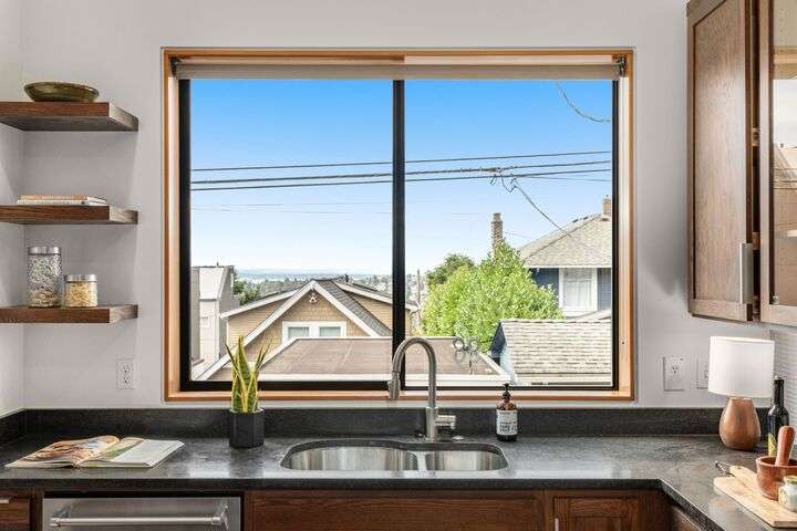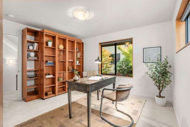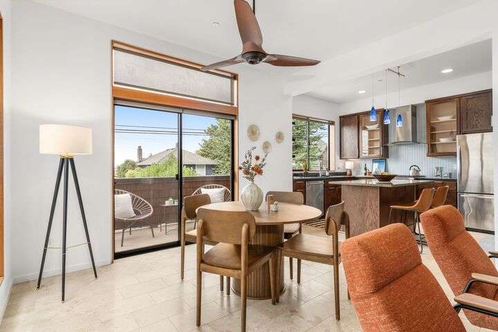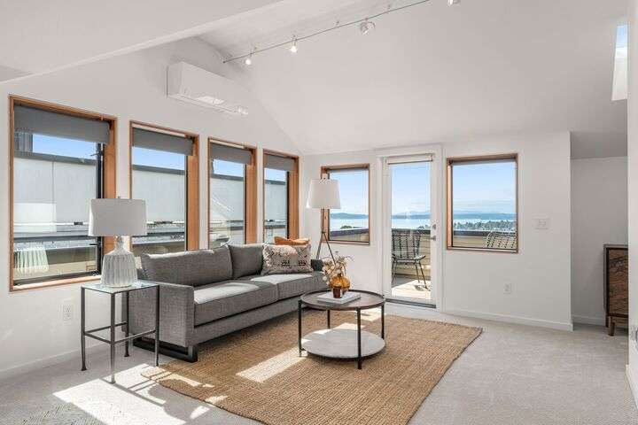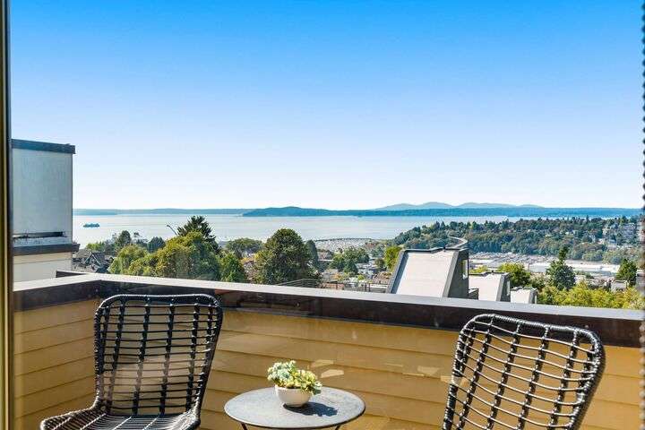 Enjoy sweeping Olympic Mountain and Puget Sound views from every floor of this 2,000+ sq ft Built Green/Energy Star townhome by JRJ Development. Located on the Crown of Queen Anne, just steps to Macrina Bakery, Ken’s Market, and the Farmers Market. The open, light-filled layout features high ceilings, a chef’s kitchen with island, formal dining, and radiant-heated Travertine floors. Central A/C, private patio, multiple view decks, abundant storage and attached garage add comfort. Three bedrooms include a fabulous primary suite with spa-like bath and soaking tub, plus a Murphy bed room for flexible uses. Fresh paint and new carpet make this home move-in ready, offering rare privacy in one of Seattle’s most desirable neighborhoods.