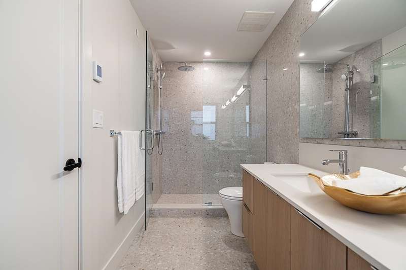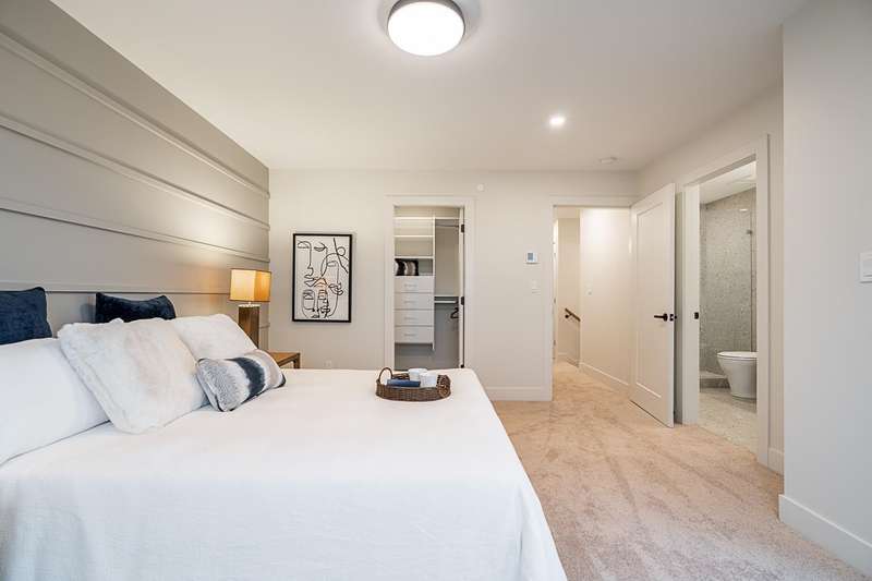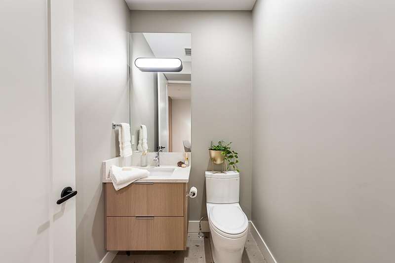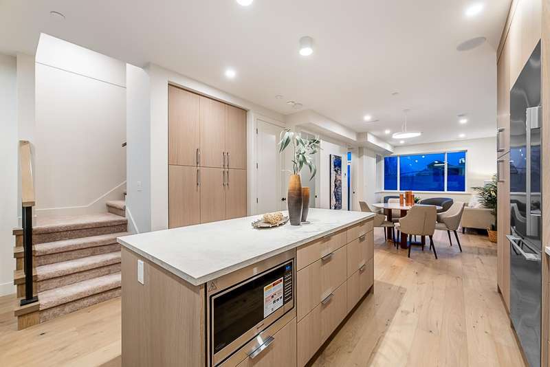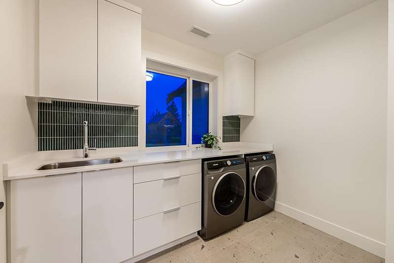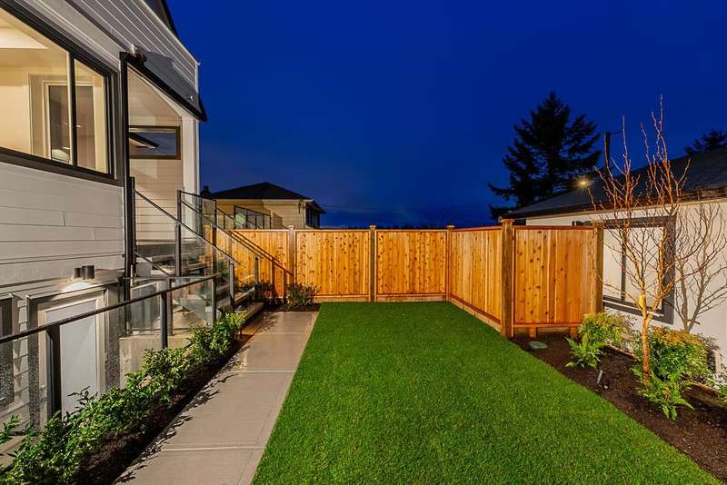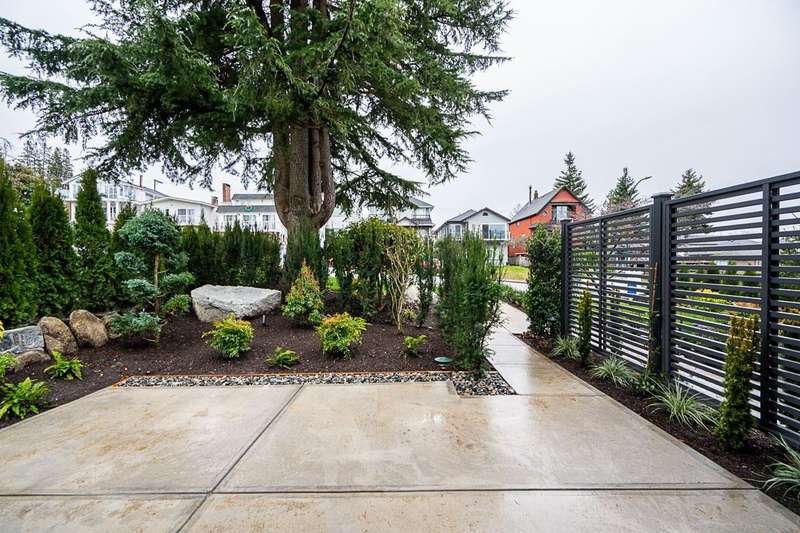 New modern 1/2 duplex built by a long established European builder. Stunning mountain and water views from both upper decks. Large top floor flex/office/bdrm. The principle bedroom features a deck, ensuite and walk-in closet. A laundry room and further bedroom and bathroom complete the upper floors. The elegant, high ceilinged Great Room has a gourmet kitchen with Fisher & Paykel appliances, an eat up centre island and a pantry wall, all flowing seamlessly into the living/dining rooms. The mudroom has custom built-ins. Fabulous, private covered patio has great sun. Landscaping features irrigation, granite walls, lighting & feature trees. Rear yard is fenced and has a single car garage. 1 bdrm legal suite downstairs. Great family neighbourhood with easy access to Hwy 1 and downtown.