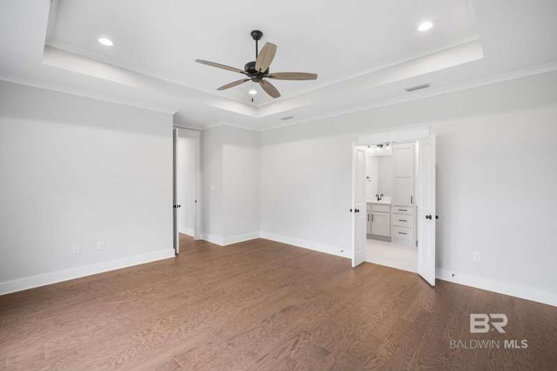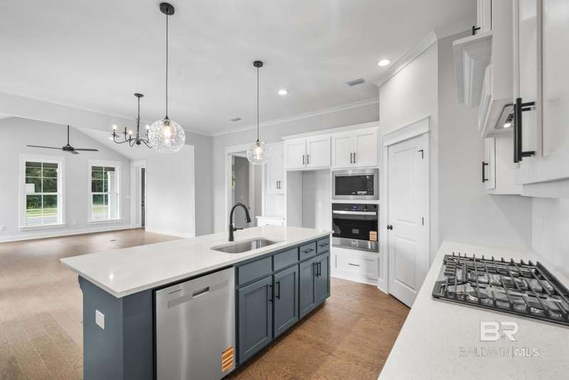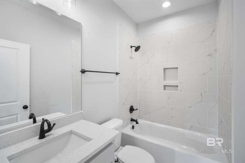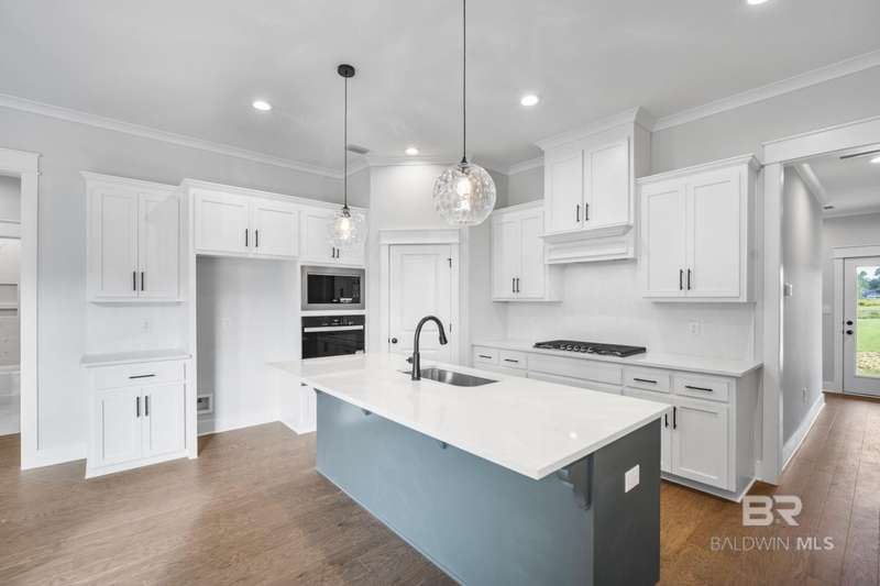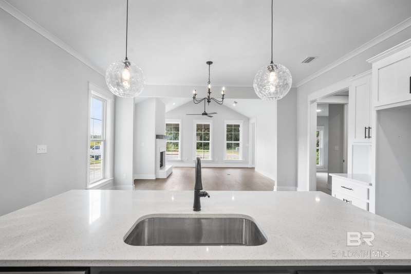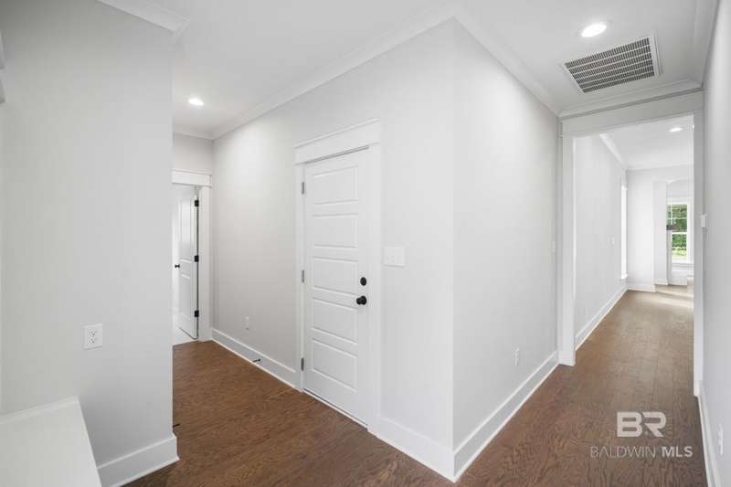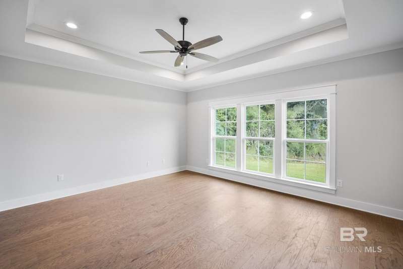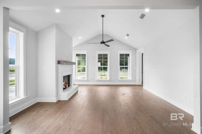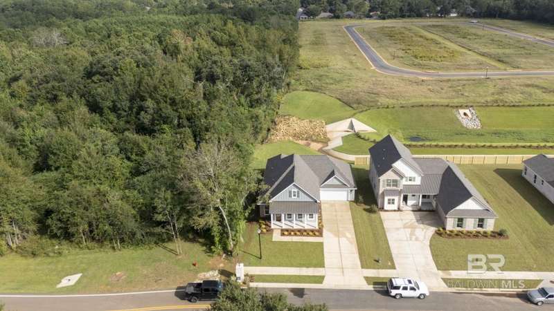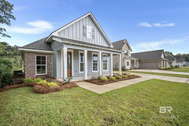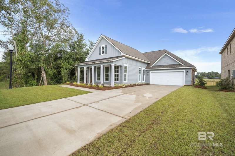 Welcome to the Poplar plan, a thoughtfully designed single-story home from Tower Homes that blends modern comfort with everyday functionality. This 3-bedroom, 2.5-bath layout features an open-concept living space anchored by a vaulted ceiling in the spacious family room and a cozy gas fireplace, creating a warm and inviting focal point. The adjacent dining area seamlessly flows into a chef-style kitchen, featuring a large island, quartz countertops, a walk-in pantry, and a premium appliance package that includes a gas cooktop and a built-in microwave/oven. The private primary suite offers a quiet retreat with backyard views, an oversized walk-in closet, and a luxurious ensuite bath featuring dual vanities, a walk-in shower with bench seating, and a private water closet. Bedrooms 2 and 3 are tucked toward the front of the home, sharing a full bath with double sinks and ample closet space. Convenience is key with a front-entry 2-car garage, drop zone, and large laundry room. A separate half bath near the garage entry is ideal for guests. Enjoy outdoor living year-round on both the front and rear covered porches, perfect for relaxing or entertaining. Located on Lot 1, Patch Place is a 64-lot subdivision located just off CR 13 at the end of Parker Ln. It is minutes from I-10 and is close to schools, shopping, parks, and more. Gold Fortified, the home includes a 1-year builder warranty, a 10-year PWSC structural warranty, and a 1-year. Termite bond with Formosan coverage. One or more principals of the selling entity are licensed real estate agents and or Brokers in AL. Buyer to verify all information during due diligence.