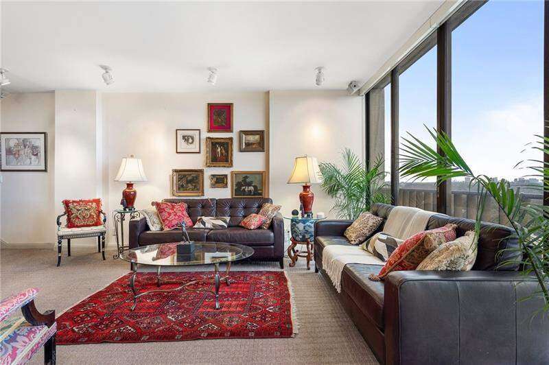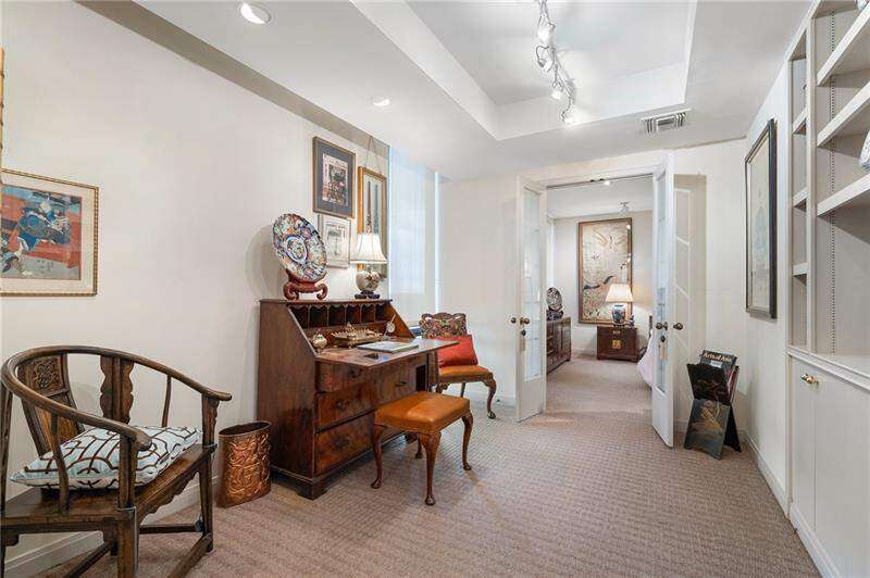 One of a kind combo unit (units 841, 843 and 847) with unbelievable space and breathtaking, unobstructed views over Ansley Park! Truly one of Colony Square's largest and best units, this unique home is an entertainer's delight! Perfect for people who are downsizing and don't want to give up space! The gracious entrance foyer leads to the spacious formal living room and dining room, both featuring views of Ansley Park and the Buckhead skyline. The wet bar and kitchen features a plethora of storage for all of your entertaining needs. Upstairs you will find another large sitting room or den with custom built-ins. In addition, there are two sizable bedrooms and full bathrooms on the western side of the building. The lower level features a light-filled den with built-ins and a gallery room for your art collection. This space can also be used as an office or sitting area, as the views of Ansley Park are spectacular! The gallery leads to the over-the-top primary suite with plenty of room for a sitting area and a custom walk-in closet. The luxurious primary bath features dual vanities, a large shower and a separate tub. In addition, there is a large laundry room with a tremendous amount of storage. Truly a lock and leave lifestyle! ALL utilities are included in your HOA fees, including high-speed internet! As part of Colony Square, you can rent unlimited parking spaces for $150 a car monthly. Recently renovated Colony Square is right outside your door -- the development includes restaurants, IPIC theater, yoga, massages, etc. Colony SQ hotel is perfect for extra guests when needed. Beltline, Woodruff Arts Center, Piedmont Park, Botanical Gardens and the High Museum are all within a short walking distance! This is city living at its very best!