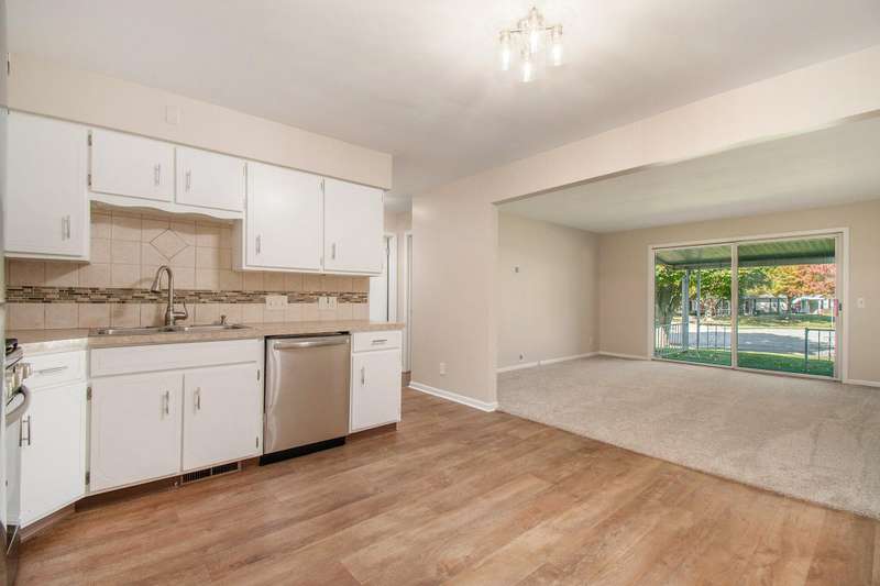 This beautifully updated end-unit 2-bedroom, 2-bath condo in a vibrant 55+ community is truly move-in ready! Fresh, neutral paint and brand-new carpet flow throughout the home. The updated eat-in kitchen features all-new stainless-steel appliances-including refrigerator, range, dishwasher, and microwave-plus a stylish countertop, backsplash, and updated cabinetry. Enjoy the spacious living room with direct access to your private covered patio, perfect for relaxing or entertaining. The main-floor bathroom has been tastefully remodeled with a new vanity, countertop, and updated lighting. Both main-level bedrooms offer generous closet space and natural light. The lower level is freshly painted and newly carpeted, offering a large second living area, full bathroom, laundry room, and a workshop area-ideal for hobbies or projects. You'll also appreciate the additional storage room conveniently connected to the unit through the shared lower-level space of the development.