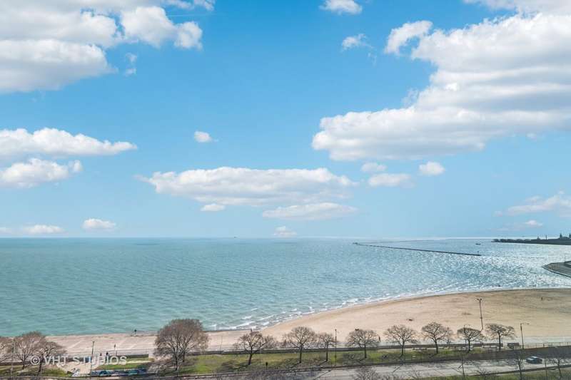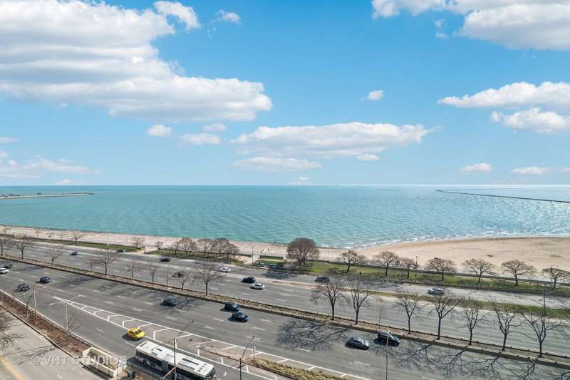 Stunning full on and direct EAST VIEWS with no obstructions and no building neighbors of Lake Michigan and Oak Street Berach from this large 900 square feet 1 bedroom and 1 bathroom home at the corner of Lakeshore and Division Street in prime Gold Coast location. Enjoy the very best the neighborhood has to offer including the underpass right outside the front door of the building to travel to the water front, beach, bike and jogging path. Every room has an eastern view. A semi open kitchen features a very large pass through with views, separate , living and dining space, ample storage throughout this home, long-time owner and pride of ownership. Features 16'x12' primary bedroom suite with adjacent bathroom also convenient for guests as a powder room. Shower/tub combination. 24 hour door staff. Onsite management, maintenance, engineering staff. Common roof deck with 360 degree views, exercise facility. Walk to the neighborhoods of the shopping districts of the top of the Mile's shopping district, Rush, Oak and State's Street's food scenes, Old Town, the south end of the actual Lincoln Park, the most popular beach on Lake Michigan, Oak Street Beach. Still very close to Northwestern Hospital Campus. Very high rated location for the in town buyer or a young executive just starting out. These views and the amount of space for a first home are not to be missed. Rental parking in the building available immediately. No wait list.