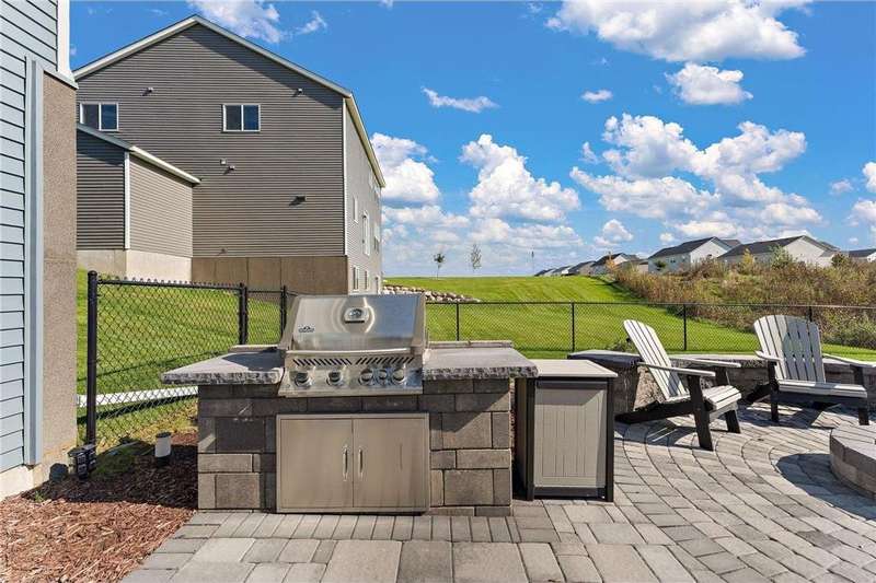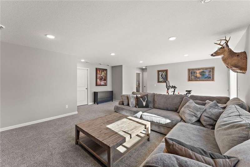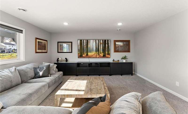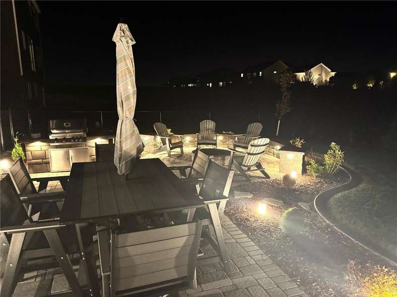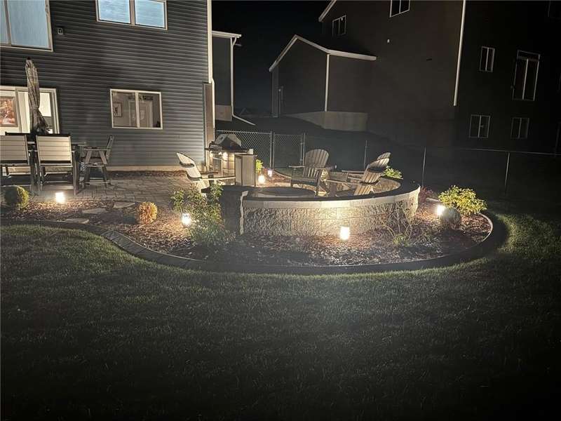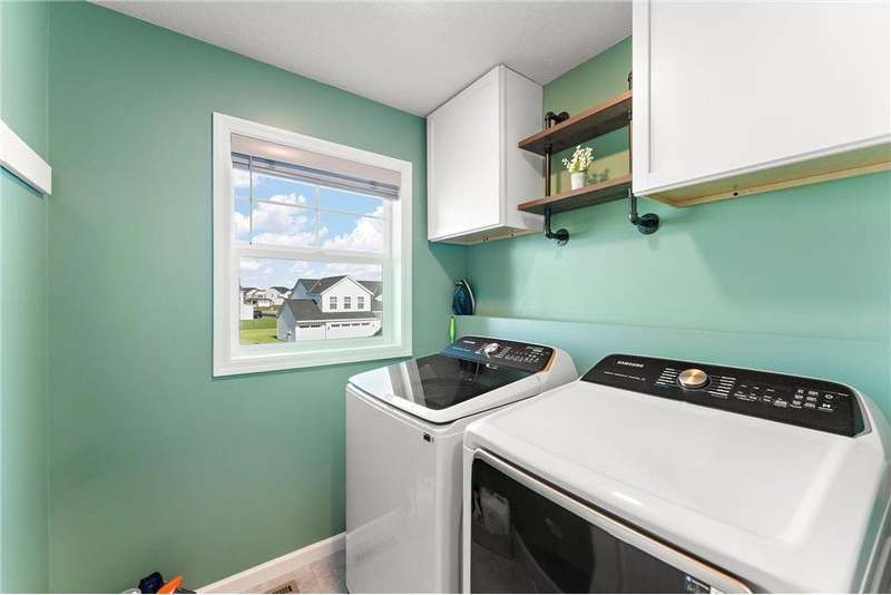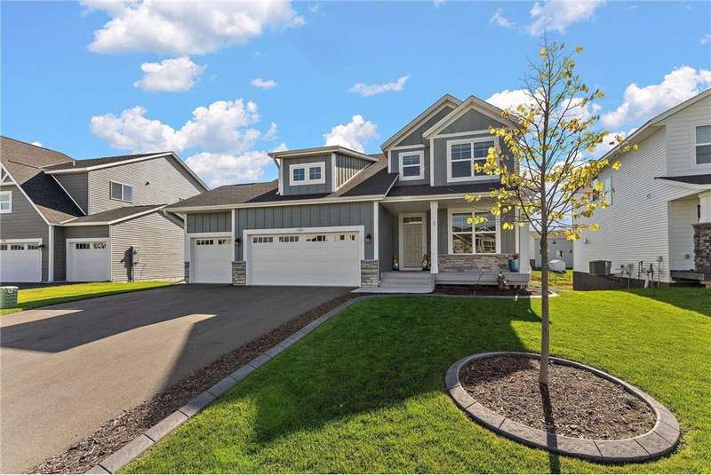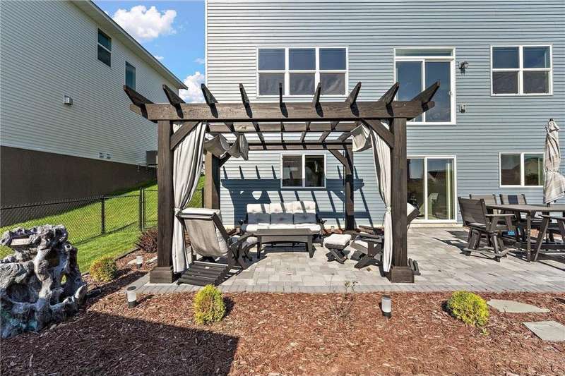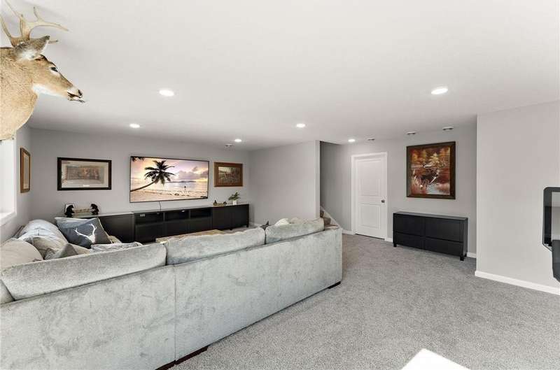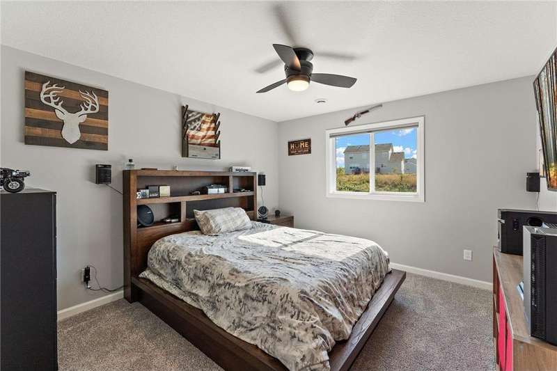 Outstanding 2024-built two-story in the highly-sought after Legacy Bay Farms! Beautifully finished top to bottom with over $95,000 in upgrades to fall in love with this home! Better than new, shows like a model with all the upgrades. From the moment you pull up, you will notice the concrete curbing around the trees & landscaping. Permanent lights surround the front roofline of the home, ready for year-round fun. No more ladders to hang your holiday lights! The lovely front porch leads you into the spacious entry & flex room. Perfect for your home office, piano or library. You will appreciate the large open floor plan! The living room has a gorgeous stone fireplace & mantle, recessed lights plus wide plank flooring across the entire floor. Large picture windows bright up the living room, w/motorized blinds. Your large table will fit comfortably in the dining room w/more options to sit at the breakfast bar. Fantastic kitchen has the large quartz island w/sink, ready for all your food prep. Tiled backsplash, new kitchen lights & newly finished walk-in pantry w/additional counter & storage space! Mudroom has hooks for coats & room for your bench w/half-bath nearby. Upper level has four bedrooms & separate laundry room w/window. New Samsung washer & dryer added plus cabinets & shelf. The landing has a new chandelier & motorized shade for the large window. Lovely tray ceiling & new fan/light in the primary bedroom w/large picture window, new blinds & walk-in closet plus private ¾ bath. Dual sinks, new towel bars, new mirrors, & shower door added. Most bedrooms have walk-in closets, new ceiling fans/lights & fresh paint. Full bath near the bedrooms. Lower level family room has space for large furniture & game area plus the fifth bedroom w/large walk-in closet. Fourth bathroom is nearby. Utility room has room for storage, new Honeywell humidifier added & water softener installed. Step outside to the incredible fenced backyard, ready for all your gatherings. All new! Built-in grill w/electric rotisserie, professionally designed & installed patio brick w/firepit plus light feature & built-in bench, lovely pergola w/covers & new shed nearby! Neatly manicured yard, retractable water hose reels. Garage is newly finished w/new heater added. Don't miss it! Welcome home!