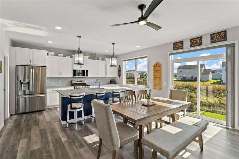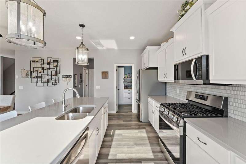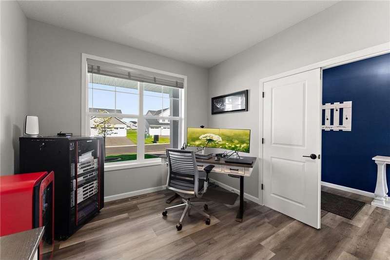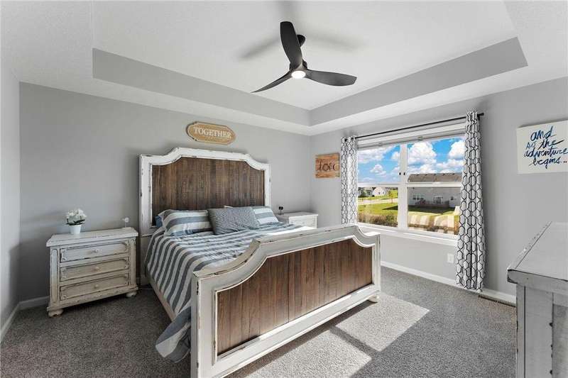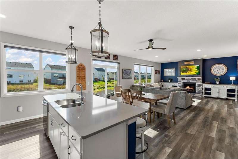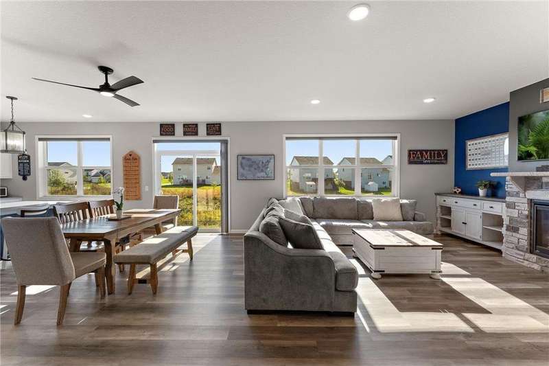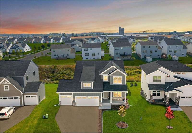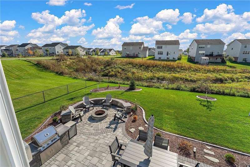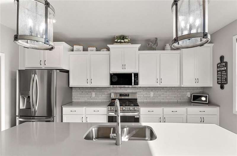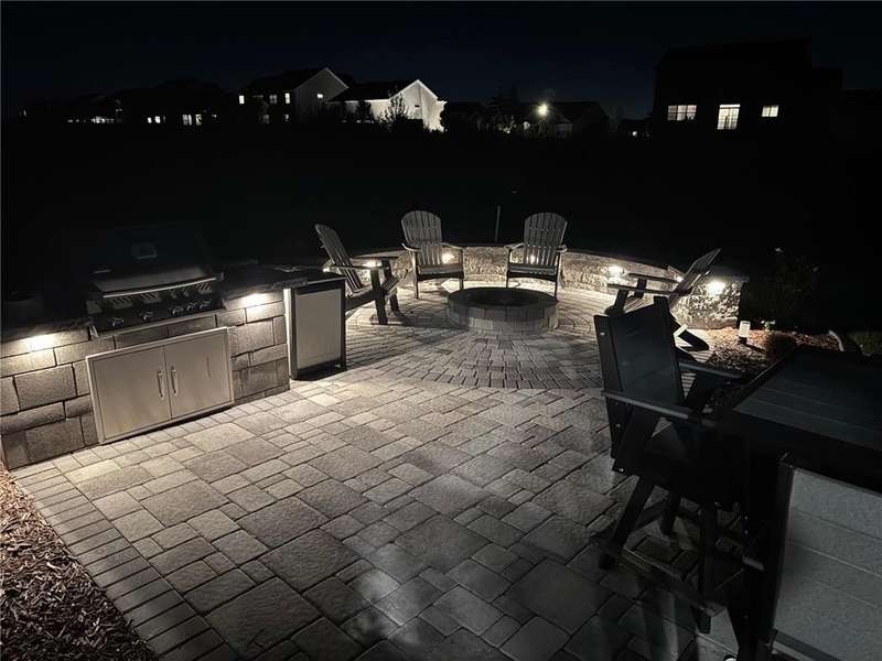 Outstanding 2024-built two-story in the highly-sought after Legacy Bay Farms! Beautifully finished top to bottom with over $95,000 in upgrades to fall in love with this home! Better than new, shows like a model with all the upgrades. From the moment you pull up, you will notice the concrete curbing around the trees & landscaping. Permanent lights surround the front roofline of the home, ready for year-round fun. No more ladders to hang your holiday lights! The lovely front porch leads you into the spacious entry & flex room. Perfect for your home office, piano or library. You will appreciate the large open floor plan! The living room has a gorgeous stone fireplace & mantle, recessed lights plus wide plank flooring across the entire floor. Large picture windows bright up the living room, w/motorized blinds. Your large table will fit comfortably in the dining room w/more options to sit at the breakfast bar. Fantastic kitchen has the large quartz island w/sink, ready for all your food prep. Tiled backsplash, new kitchen lights & newly finished walk-in pantry w/additional counter & storage space! Mudroom has hooks for coats & room for your bench w/half-bath nearby. Upper level has four bedrooms & separate laundry room w/window. New Samsung washer & dryer added plus cabinets & shelf. The landing has a new chandelier & motorized shade for the large window. Lovely tray ceiling & new fan/light in the primary bedroom w/large picture window, new blinds & walk-in closet plus private ¾ bath. Dual sinks, new towel bars, new mirrors, & shower door added. Most bedrooms have walk-in closets, new ceiling fans/lights & fresh paint. Full bath near the bedrooms. Lower level family room has space for large furniture & game area plus the fifth bedroom w/large walk-in closet. Fourth bathroom is nearby. Utility room has room for storage, new Honeywell humidifier added & water softener installed. Step outside to the incredible fenced backyard, ready for all your gatherings. All new! Built-in grill w/electric rotisserie, professionally designed & installed patio brick w/firepit plus light feature & built-in bench, lovely pergola w/covers & new shed nearby! Neatly manicured yard, retractable water hose reels. Garage is newly finished w/new heater added. Don't miss it! Welcome home!