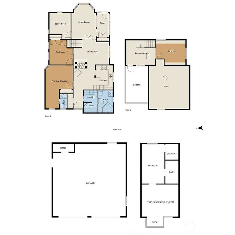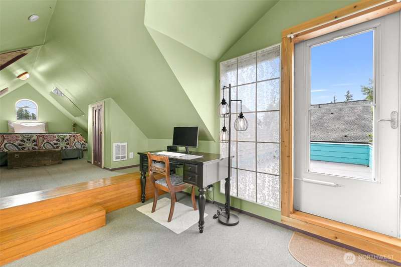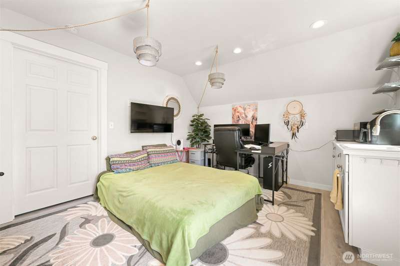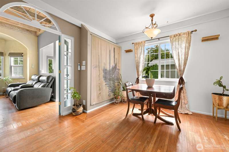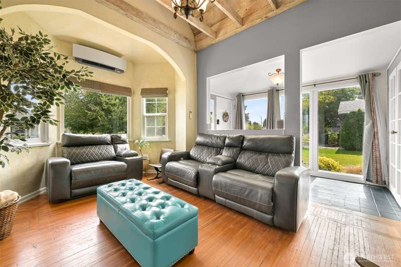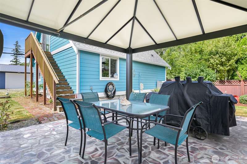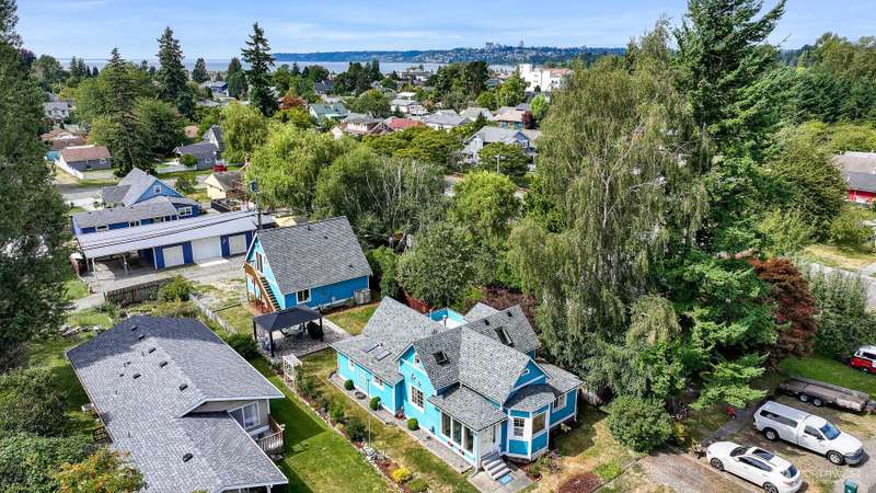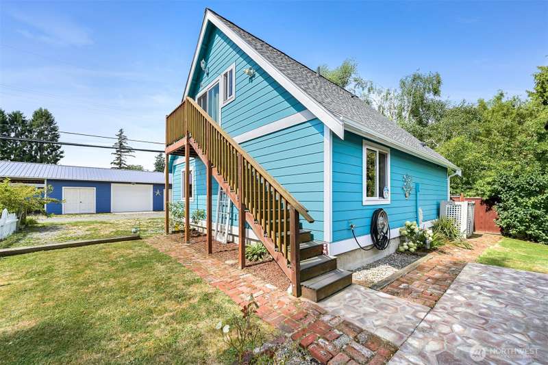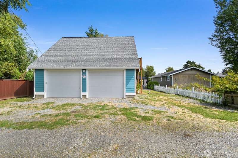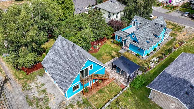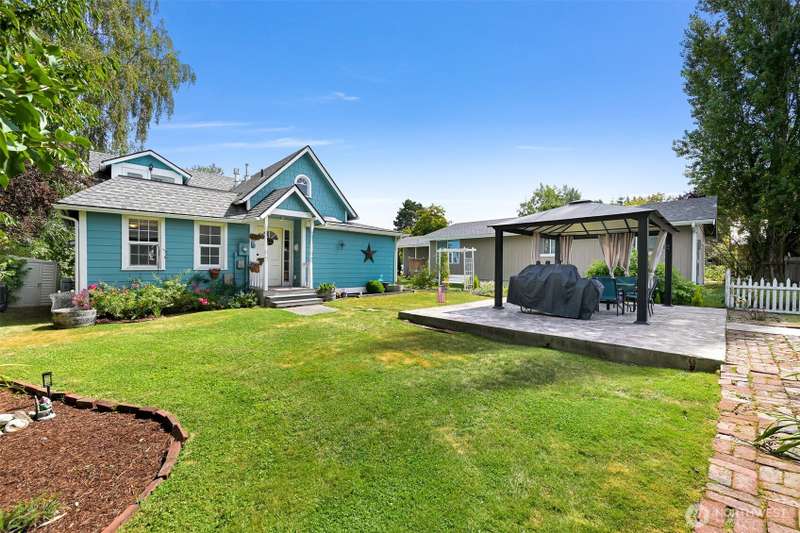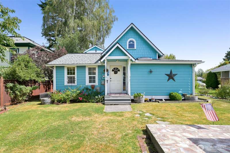 Historic Victorian home in the Salishan neighborhood oozes with charm. Whitewashed exposed trusses, original fir floors in living & dining rooms, brick enclosure for a freestanding stove (plumbed for gas), and French doors. Upstairs loft bedroom with skylights and private roof deck. New siding, roof, and heat pump installed in 2017. The 2018-built detached 784 SQFT garage/shop has a half bathroom and a 420 SQFT guest suite above with exterior access. The suite has a living room with wet bar, bedroom, full bathroom and walk-in closet with a combo washer/dryer. Huge outdoor patio with gazebo. Off-street parking for 5+ vehicles and/or RV/boat/trailer. Assumable VA loan at 2.875% interest rate!