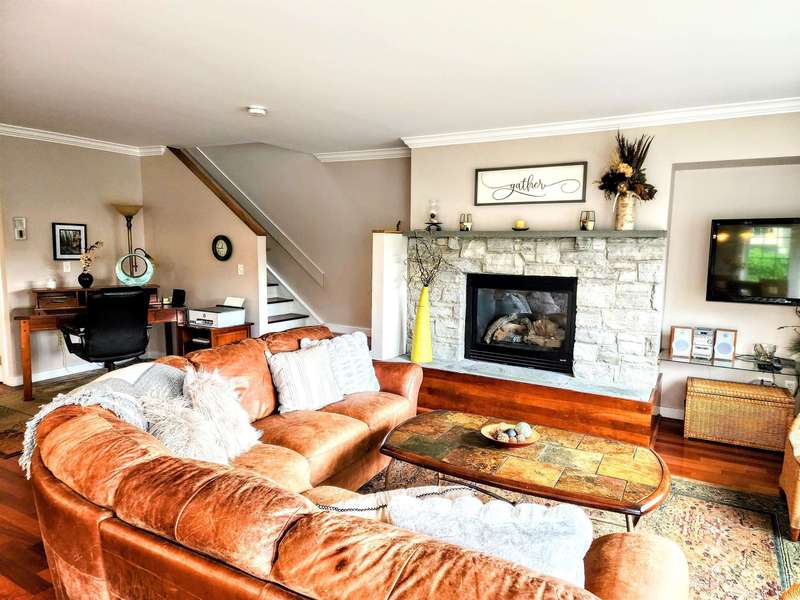 View, location, convenience..... this 3 bedroom, luxury unit has it all. Out the window you look right at Mt Mansfield and the ski slopes only a few miles away. The Stowe recreation path is across the street. Stowe Village down the road only 4 miles, and it abuts the Topnotch Resort and Spa, a 4 star, 4 diamond and 4 season resort with its award winning tennis center and health spa with indoor and outdoor courts and swimming pools, saunas, exercise rooms, treatments, trail and sleigh rides , XC trails , lounge, fine dining and more. Discounted memberships are available for homeowners. The main floor has an open floor plan with a propane fireplace, direct access onto the deck and a bedroom with a lovely brick patio right out the door. Upstairs, the primary en suite bedroom with a second fireplace. In the basement, a large family room with a bathroom and kitchenette and a bonus space in the back, garage in the front, All this and it comes furnished and equipped and ready for yo...
