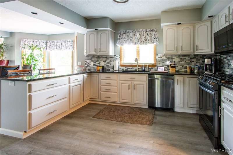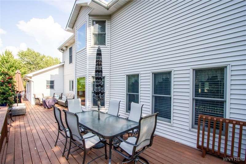 Welcome Home!! This beauty sits on almost 5 acres of a partially wooded lot. From the minute you pull in the long driveway that has an abundance of parking, you will fall in love. The freshly landscaped front gardens are bursting with pride. Enjoy summer/fall evenings on the covered front porch sipping some apple cider. As you entry the front door you are greeted with a fabulous foyer that is spacious and bright. Every room has been painted with warm colors and tastefully decorated. Morning conversation can be enjoyed in the eat-in kitchen or at the island that has granite countertops. Holidays can be spent together around the dining room table in the formal dining room. You have 4 bedrooms on the second floor & the master is an en suite. To make this home more appealing there is first floor laundry as well as what could be an in-law setup featuring a large bedroom, full bath with a step in shower, wide hallways and a separate entrance. This would be ideal for a family member that is in college, in-laws or you could turn it into an office area. Updates include: new flooring, new carpeting, new front& back screen doors, HE furnace 2020, hot water tank 2021 & new insulated garage doors, this home has a 4 car garage, 2 of which are heated (garages have a 45K BTU heater for winter projects). Enjoy the rest of summer on the wrap around deck overlooking the large backyard. I cannot say enough about this property, come see for yourself. Offers, reviewed as received