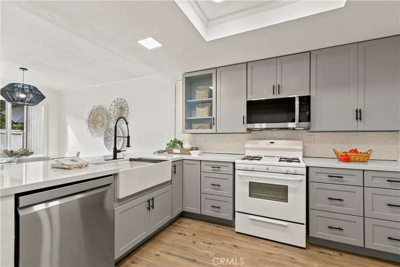 Sun-soaked ceilings, clean lines, and a floor plan that actually flows — this 3 bed, 3 bath townhome checks all the boxes (and then some). The living room pulls you in with its cozy fireplace and double-height ceilings. The kitchen? Granite countertops, ample storage, and a breakfast bar setup made for slow mornings or spontaneous wine nights. New LVP flooring throughout keeps things modern and low-maintenance. Upstairs, the primary suite feels like a private retreat, vaulted ceilings, tons of closet space, and an en-suite with a walk-in shower and dual sinks. Enjoy a private patio for morning coffee or relaxing evenings, plus direct access to an attached two-car garage. The community includes a pool, spa, and well-maintained grounds, all within minutes of Old Towne Orange, Chapman University, restaurants, shopping, and freeway access. A rare opportunity to own in one of Orange’s most desirable communities.