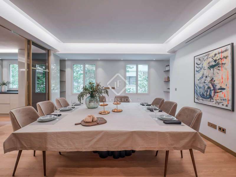 Lucas Fox presents this extraordinary, brand new, meticulously renovated exterior apartment, located in the heart of the Salamanca district, one of the most prestigious in Madrid. The property is located on a high floor with a lift. The night area has five bedrooms, one with its own dressing room, and four bathrooms. The day area has a very spacious double living room with a terrace, a dining room and a semi-open kitchen to the dining room that is fully equipped and furnished with designer furniture and high-end appliances . The layout is completed with a separate laundry room with a service entrance. This property has been completely renovated, with the highest quality standards and exquisite style in every detail. The combination of a prime location, modern amenities and a recent high-quality renovation makes this property a great option in Madrid. For more information or to schedule a visit, please contact us.