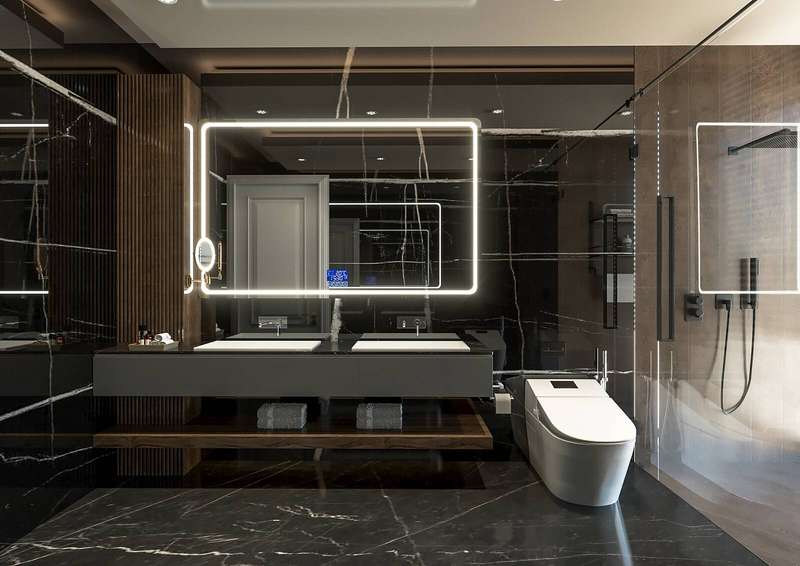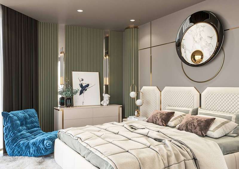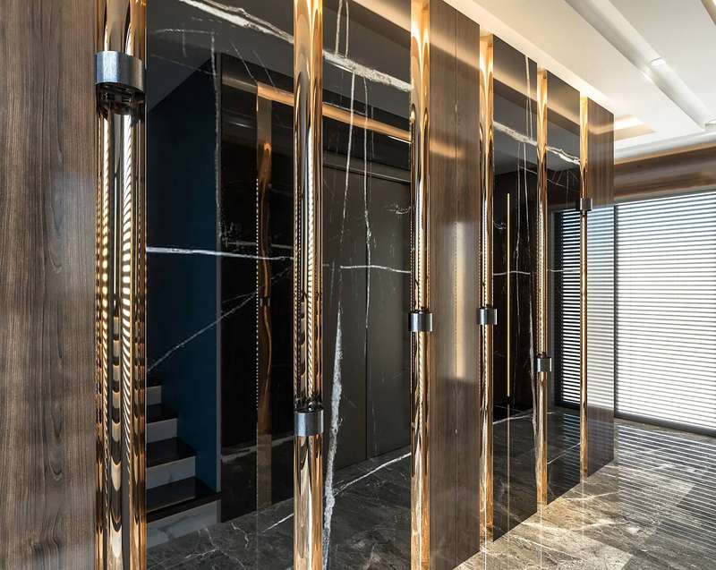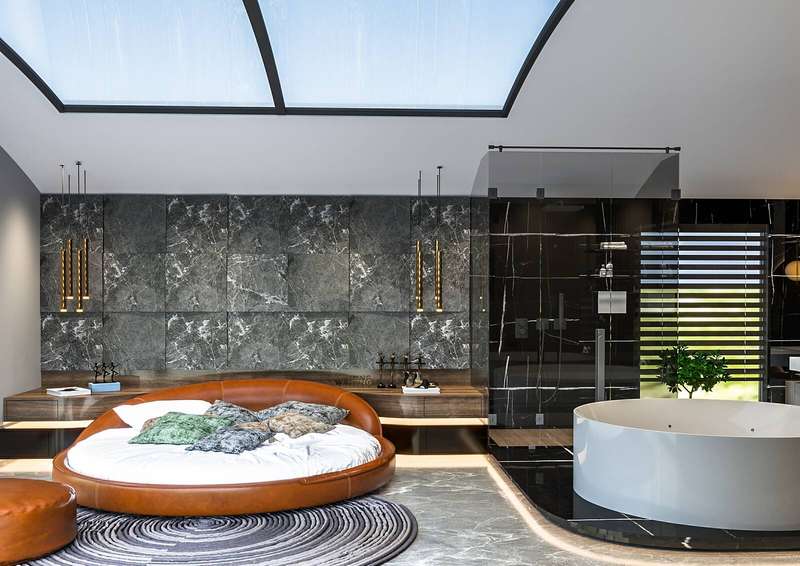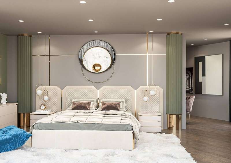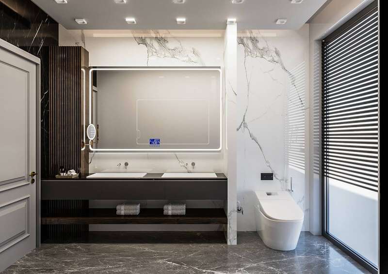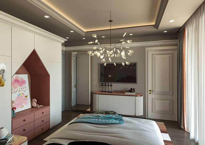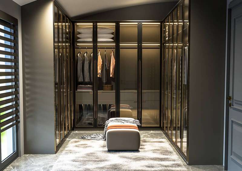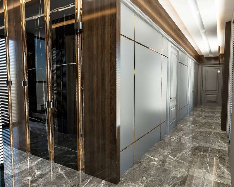 The villa provides spacious living areas and consists of five bedrooms, a living room, an open-plan kitchen, six bathrooms, two balconies, and a terrace in the interior design. The modern-designed villa is equipped with ceramic flooring, aluminum double-glazed windows, an acrylic countertop in the kitchen, kitchen, and bathroom cabinets, an underfloor heating system, air conditioning, a smart home system, a fireplace, and a jacuzzi. In addition, the villa will be delivered with Siemens brand white goods.