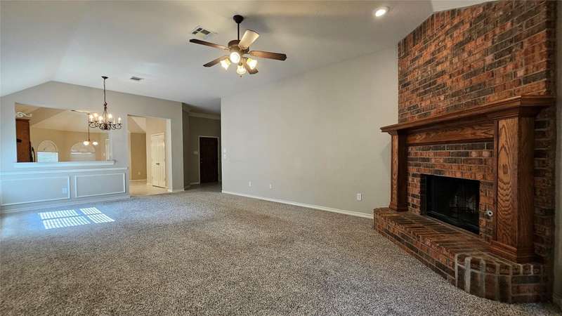 Well kept property ready for new occupants! This open floor plan offers a large living area with fireplace, carpeting and tile. Kitchen with breakfast nook door entering onto front covered patio. Refrigerator included. Large main bedroom overlooks backyard. Bathroom with dual vanities, separate shower, & walk in closet. You will love the amenities the community has to offer as well as an easy commute to 121.$50 Application fee required for each occupant 18+ Yrs. Please submit 3 months proof of income + copy of ID with applications or Tax Returns if self-employed. Income must meet or exceed 3 times monthly rent. Credit score 600+. One dog allowed on case by case basis. No Cats.