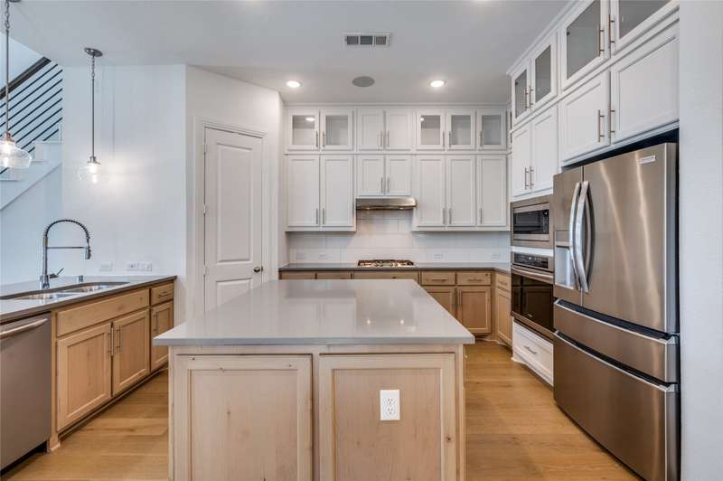 Stunning 4 bedroom Highland Homes townhome offered for lease. This designer townhome was the model home and features a range of upgrades including plantation shutters, wide plank hardwood floors, floor to ceiling stone fireplace, custom cabinetry, gas range, island and breakfast bar. The functional floorpan has 1 bedroom and 1 full bath downstairs, perfect for guest or a home office. The upper level has a multi-purpose game room loft, two full baths and 3 additional bedrooms. The primary suite features a soaking tub, dual vanities and a large walk in closet. Private patio, green space and oversized 2 car garage. Sidewalk paths lead to the community pool, parks, market and Walsh elementary. Highly acclaimed Aledo ISD. Pets are case by case. Refrigerator is included. Front yard is maintained by HOA. Backyard and decorative pots are to be maintained at tenants expense.