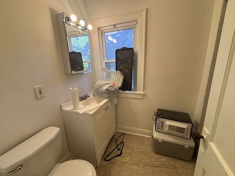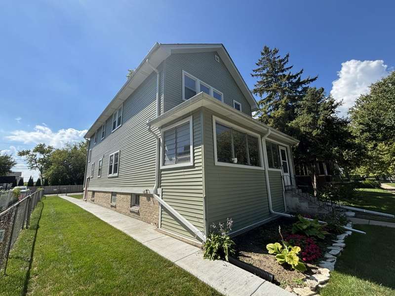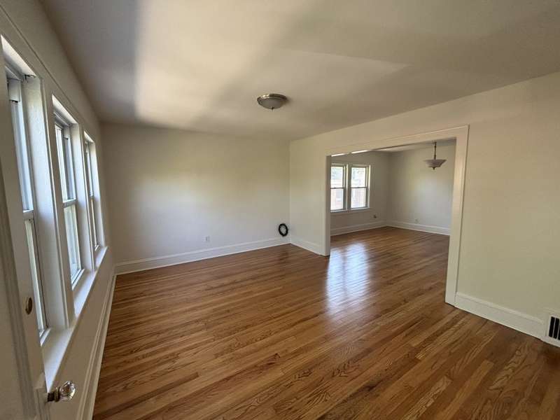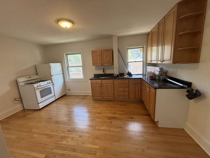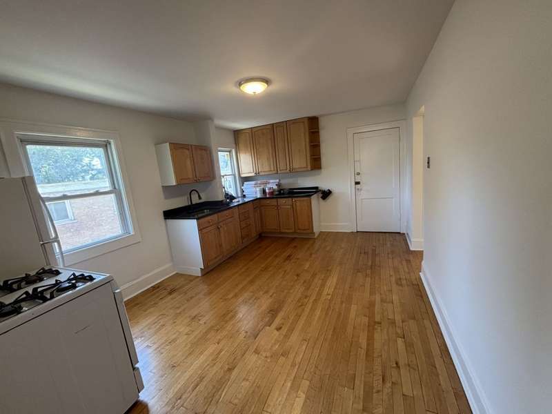 Immediately available. Newly updated two-unit building. 2 bedrooms plus bath. Large eat-in kitchen. Separate living and dining room. Freshly refinished hardwood floors throughout, neutrally painted. Kitchen with granite counter-tops. Central heat and air. Ceramic tile bathrooms. Private laundry and storage in basement. Parking pad off back alley. Large fence-in yard with cement patio. No pets. Across the street from Evanston Township High School, close to Dodge and Dempster shopping district. Feeds into Lincolnwood Elementary and Haven Middle Schools. Has additional walk in closet and storage closet.