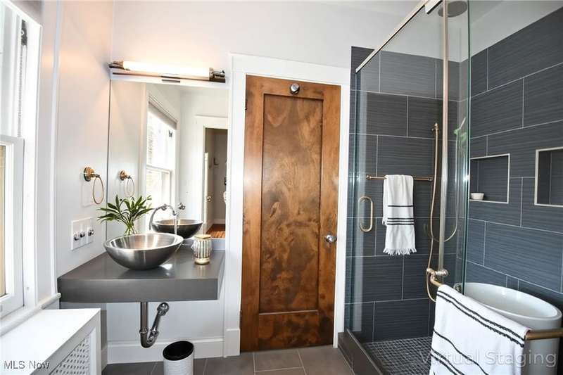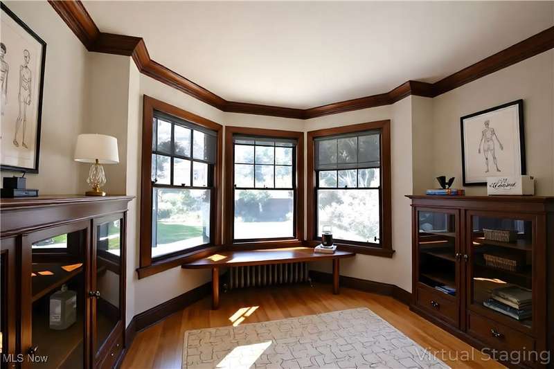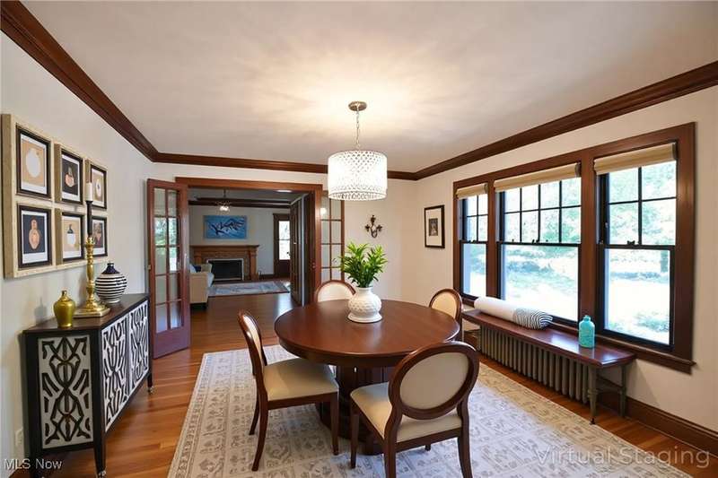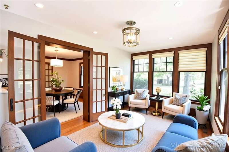 Beautifully maintained Center Hall Georgian in a sought after Cleveland Heights' neighborhood. ?As you enter the home you will immediately see incredible attention to detail & exquisite craftsmanship, with hardwood floors throughout & plenty of natural light from the large windows. Enjoy the gas fireplace in the living room & a reading nook with original built in glass-door cabinetry. A three-season porch with sliding doors on all sides welcomes the sun. Gourmets will truly enjoy the kitchen, with its ample storage and prep space, and top of the line stainless steel appliances including separate convection steam oven, beverage drawers and double wine fridge. A butler's pantry compliments this custom kitchen. Upstairs, the ensuite primary offers a large closet and dressing area. Four additional bedrooms with attached full baths round out the 2nd flr. The 3rd floor offers an in-law suite with a large living room, additional bedroom & full bath. Extra space for games, movie night and recreation in the finished basement which also includes a wet bar & another gas fireplace. Outdoors, enjoy lovely landscaping from the large deck and fully fenced in backyard. Prime location close to shops, restaurants, hospitals, schools, Shaker Lakes, downtown and so much more.
