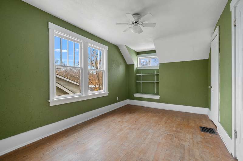 Beautifully maintained home set in the area's premier destination of Hillcrest. From the huge front porch, step inside to a large living room that blends to the dining area. There is fresh paint and plenty of windows to allow the natural light to flow in. The spacious kitchen has white cabinets and tile countertops with backsplash, complete with a gas range. The main floor bedroom and full bath complete the main level. Upstairs, there are an additional two bedrooms, including one with an ensuite. The basement is dry with plenty of storage space and includes the laundry area and new Furnace & Water Heater. In the backyard you will find a partially fenced yard and a newly constructed 1.5 car insulated garage. The professional landscaped yard includes native plants that bloom each spring. Conveniently located close to Kleinstuck Preserve, the YMCA, schools and downtown.