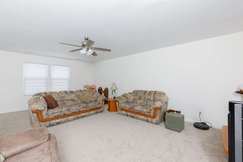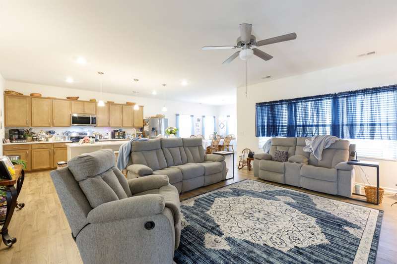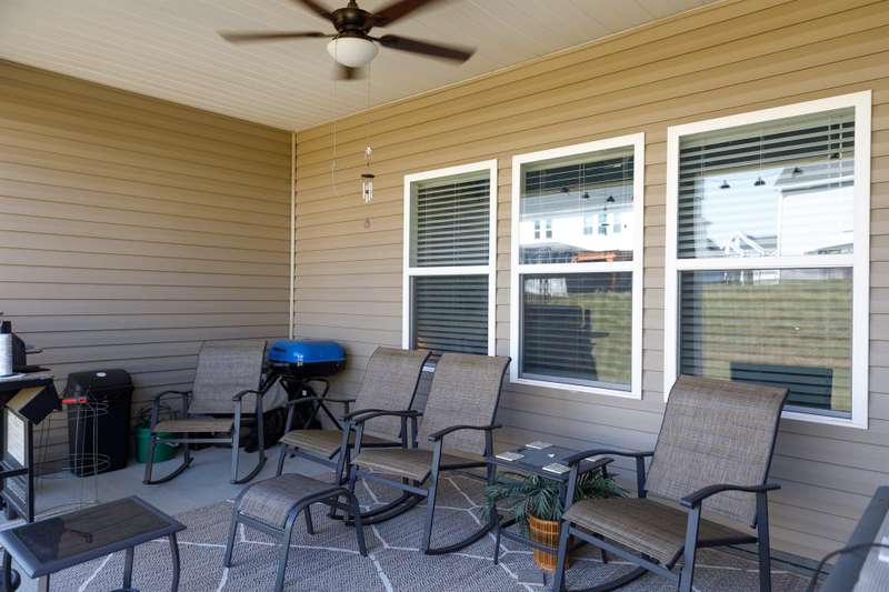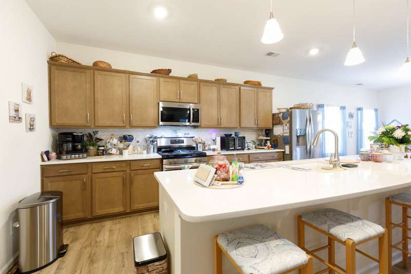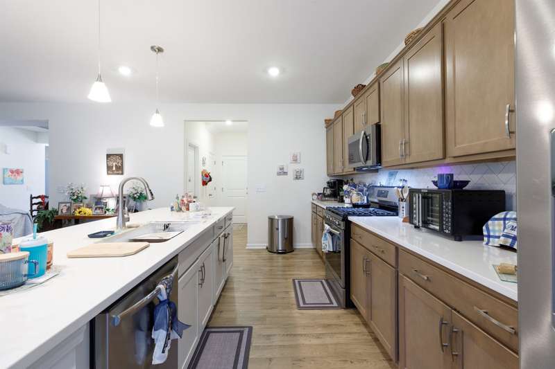Discover the ease of modern living in this one-story ranch with a spacious bonus room over the garage, located in the popular Baileys Run community. Completed in 2024, this home offers an open floor plan designed for both everyday comfort and entertaining. The kitchen is a true centerpiece with quartz countertops, a large island with breakfast bar, gas range, and walk-in pantry. The living room features custom built-ins and a gas fireplace, creating a warm and inviting atmosphere. The primary suite offers a relaxing retreat with a tray ceiling, tiled shower, and walk-in closet. The two secondary bedrooms also include their own walk-in closets for extra storage. Start the day on the front porch, wind down on the rear covered porch, and enjoy weekends at the community pool. With the refrigerator, washer, and dryer included, this home is ready for you to move in and start enjoying the lifestyle you've been looking for.