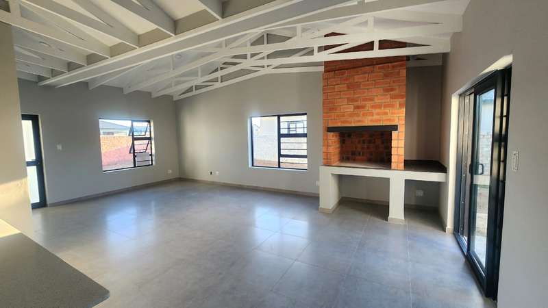 Modern Newly Built Family Home This stunning newly built home offers the perfect blend of style, space, and functionality. Designed for comfortable family living with modern features and elegant finishes throughout. Key Features: • 3 Spacious Bedrooms • 2 Modern Bathrooms • Open-Plan Living and Dining Areas • Indoor Braai Area – Perfect for Year-Round Entertaining • Extra-Large Double Garage • Contemporary, High-End Finishes Throughout • No Transfer Duty • Brand New – Move-In Ready! Enjoy the ease of modern living in a thoughtfully designed home that’s ready for you to make it your own.