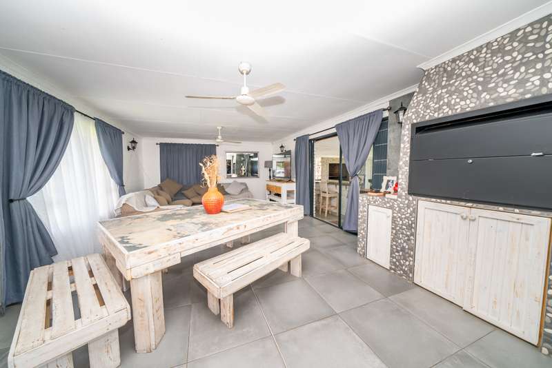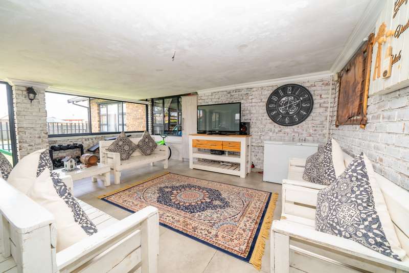 Indulge in luxury living at its finest with this stunning property! Boasting a seamless open-plan design, this home effortlessly merges the spacious lounge with a well-appointed kitchen, ideal for family gatherings and entertaining. Retreat to tranquil bedrooms adorned with plastered walls, offering the perfect sanctuary for relaxation and rejuvenation. Step outside into your own private paradise, complete with a delightful splash pool, perfect for refreshing dips and creating cherished memories. Entertain in style with the built-in bar and firepit, perfect for unforgettable gatherings with loved ones. Enjoy the convenience of a double garage and a wendy house providing additional storage space. With a pet-friendly oasis and tiled private garden, this home offers something for everyone. Don't miss out on this opportunity for luxury, security, and comfort! Contact us today for a viewing.