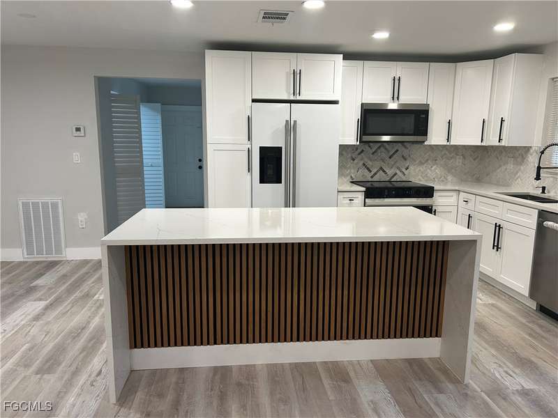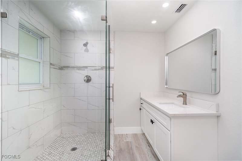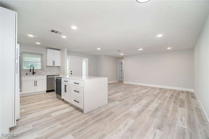 Welcome home to this charming home within mere feet of the water! Enjoy the ocean breeze in your beautifully restored home! The wide open floor plan has a brand new kitchen, appliances and WINE FRIDGE! A chef's dream kitchen with quartz counter tops and WATERFALL island. Luxury vinyl throughout the main house and GUEST HOUSE. Large fenced in yard with room to play! With brand new baseboards, new lighting, fans, blinds on all the windows and freshly painted inside and out, this home is waiting for you! Additional features include CLOSET ORGANIZERS AND GLASS ENCLOSUED SHOWERS. The guest home features all new cabinetry, appliances, bathroom and a private entrance!