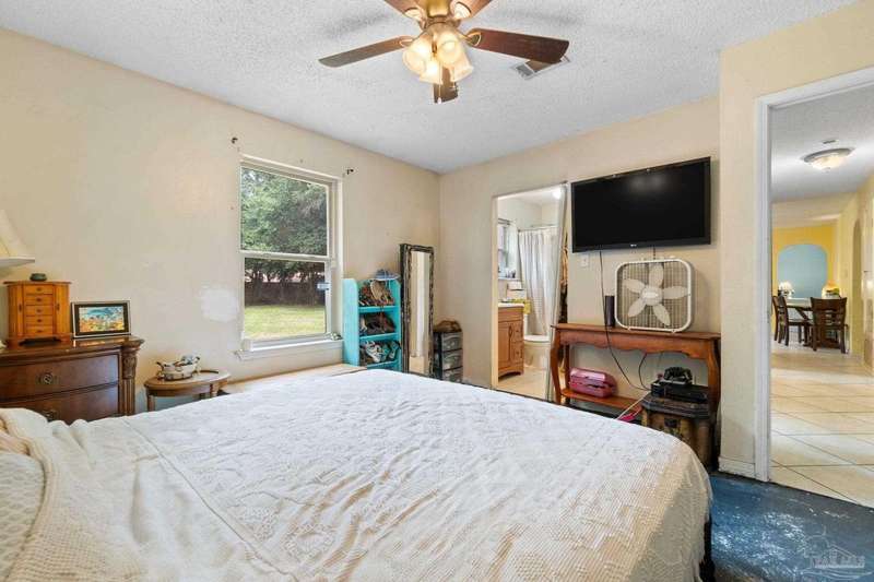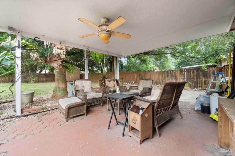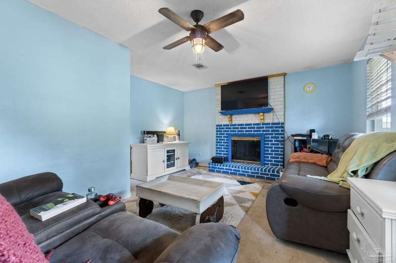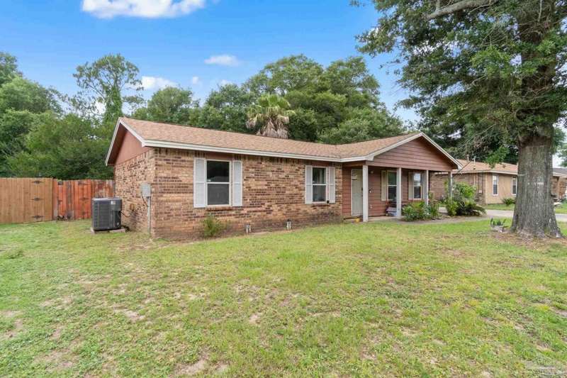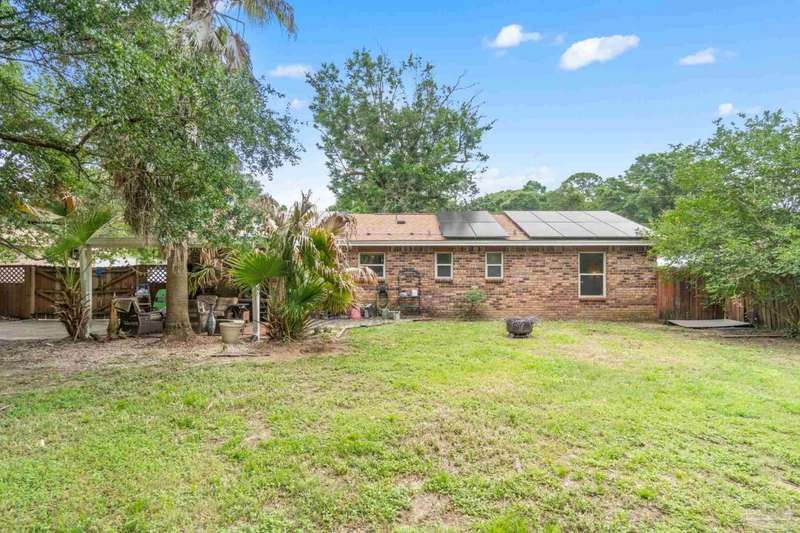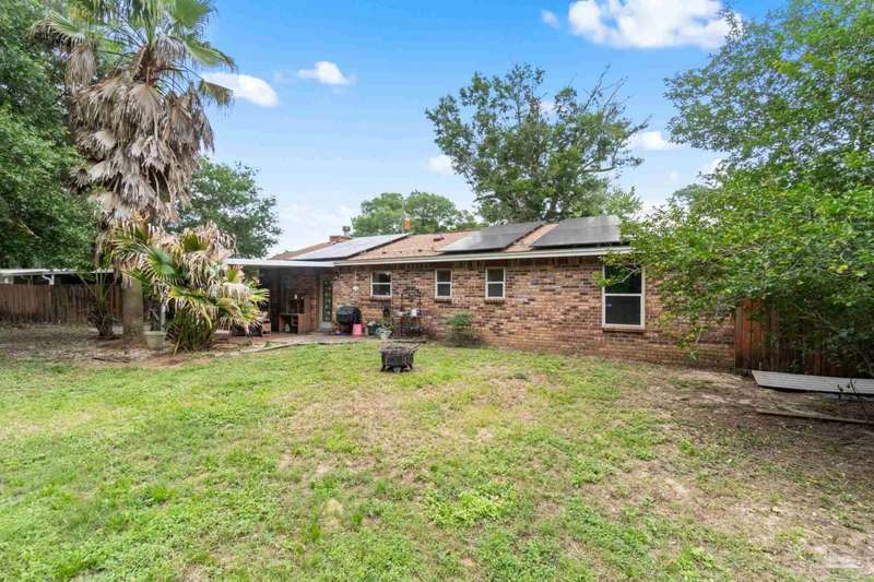 NEW FLOORING! New Pictures coming soon! This solid brick home presents an excellent opportunity for buyers seeking an affordable home with recent major updates and low insurance! Currently in the process of transformation, the home is having brand-new flooring installed! The property boasts several valuable features including paid-off solar panels for energy efficiency, a roof replaced in 2021, and a new HVAC system installed in 2022. The interior offers a spacious living room with a charming brick fireplace, a functional eat-in kitchen with plenty of storage, and a primary bedroom suite complete with walk-in closet and private bathroom. An oversized laundry room provides additional storage space. The fully fenced backyard features a covered patio and two storage sheds, perfect for all your storage needs or hobby space. Updated photos will be available once the new flooring installation is finished.