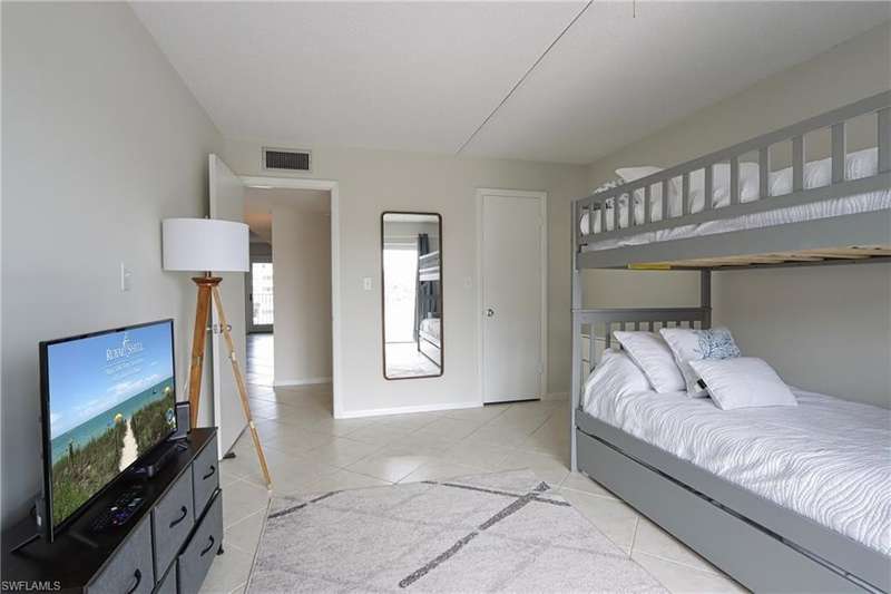 It is all about the beach at this charming 2-bedroom, 2-bath, 4th floor condominium. Views from the lanai, kitchen and living area looking out to a landscaped garden oasis, resort style pool on to the Gulf of Mexico and beyond! Features include private balconies from both the primary and guest bedrooms. Living room and primary bedroom have been updated with flat screen TV's. Primary bedroom has a king bed and ensuite bathroom, guest bedroom has bunk bed with trundle to sleep 3 comfortably. Wireless internet included for your convenience. Bonita Beach Club is a beachfront, tropically landscaped, gated community located on Hickory Blvd at the very North end tip of Bonita Beach! Offering many amenities, you are sure to never get bored. Amenities include an 80-ft. heated community beachfront pool, fitness center, tennis courts, billiards room, library, social room with kitchen, BBQ area, shuffleboard, car wash area, fishing, direct beach access and so much more! Off Season weekly May thru December at $2000 a week of $3,000 a week during high season.