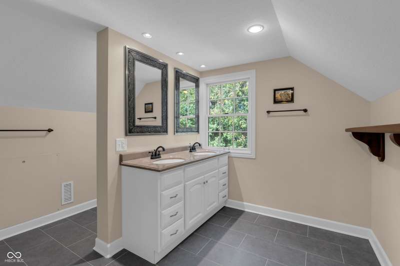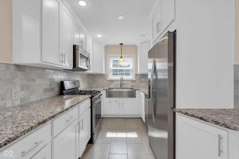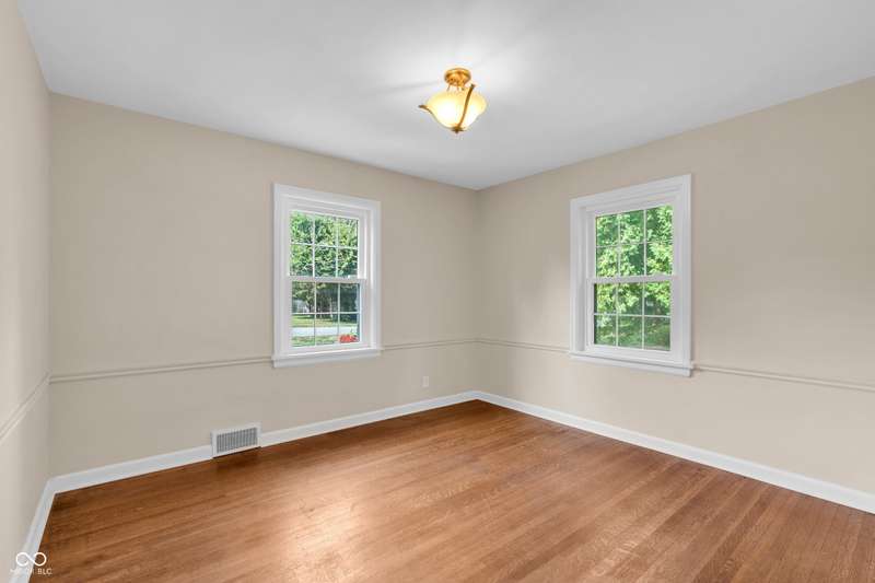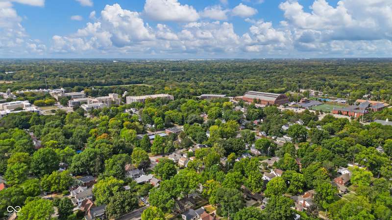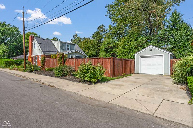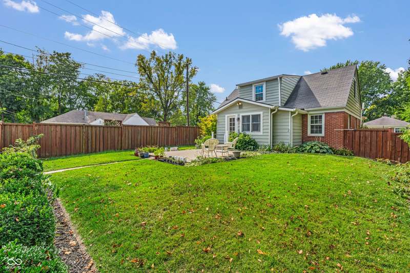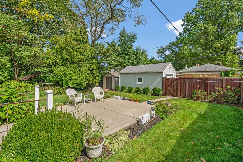 Welcome home to Butler-Tarkington! This updated three-bedroom, 2.5-bathroom home is just blocks from all that Butler University has to offer, ready for you to move right in. The second-level primary bedroom features a walk-in closet, double sinks in the bath, and fresh new carpet. Enjoy the original charm of 1940 with lovely hardwood floors, a fireplace, and intricate woodwork, complemented by an updated modern kitchen and bathrooms. The large eat-in kitchen is perfect for gatherings. The dry basement provides ample extra storage. Outside, you'll find a one-car detached garage, an oversized patio, an extra storage shed, and a large corner lot with stunning gardens. Recent updates include new carpet, updated windows and a newer HVAC system. The roof is 11 years old.