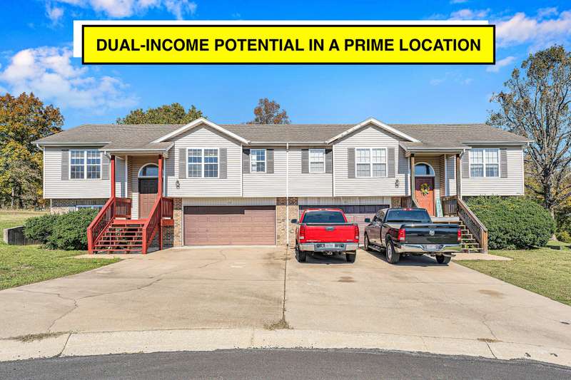 DUAL-INCOME POTENTIAL IN A PRIME LOCATION. This duplex offers instant rental revenue, making it a smart addition to any investment portfolio. Live in one unit and rent out the other, or enjoy solid rental income from both! Each home features a fantastic floor plan with 3 beds, 3 baths, a convenient basement perfect for extra living space, a home office, or an entertainment area, and 2-car garage. 170 has been occupied with tenants for the past three years and would like to stay if the new owner wishes. It's clean and in good condition. 172 is vacant for showings. The seller had to decline putting a tenant in place to make it easier for potential buyers. It has new carpet and a refrigerator. The interior has fresh paint as well as the front and back decks.Both homes are ready for the new owners. The Woodland Estates is conveniently located near everything Branson has to offer, without the traffic, and is just 4 minutes from Cooper Creek Marina. As a bonus, enjoy the benefit of strong rental income that is already established. Tenant pays $1,700 per month, which can offset or even cover your mortgage payment. An excellent opportunity for both investors and owner-occupants! As a bonus, NO HOA, sits on approx half acre. All appliances are included, along with a one-year HSA home warranty. SMART WAY TO BUILD EQUITY. DON'T WAIT TOO LONG. THESE ONES DON'T COME TOO OFTEN! Public Open House: Sunday, December 7th, from 1:00 to 3:00 pm.