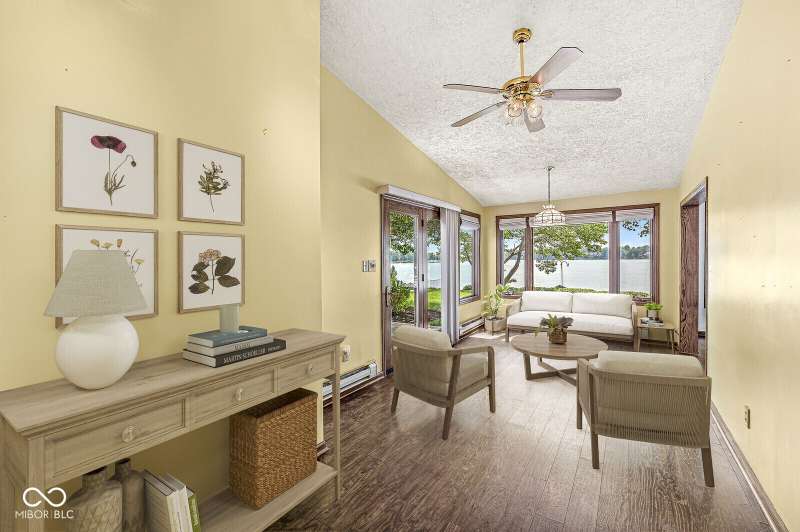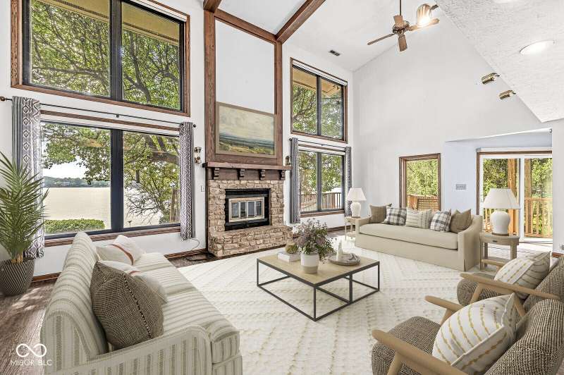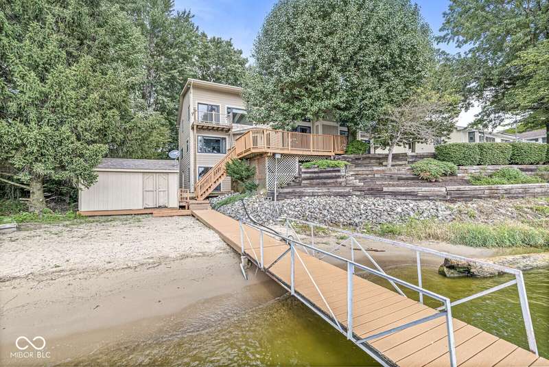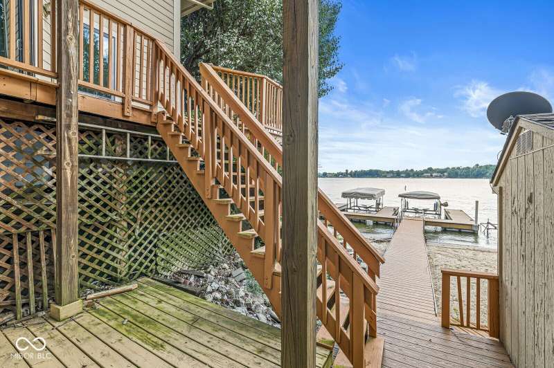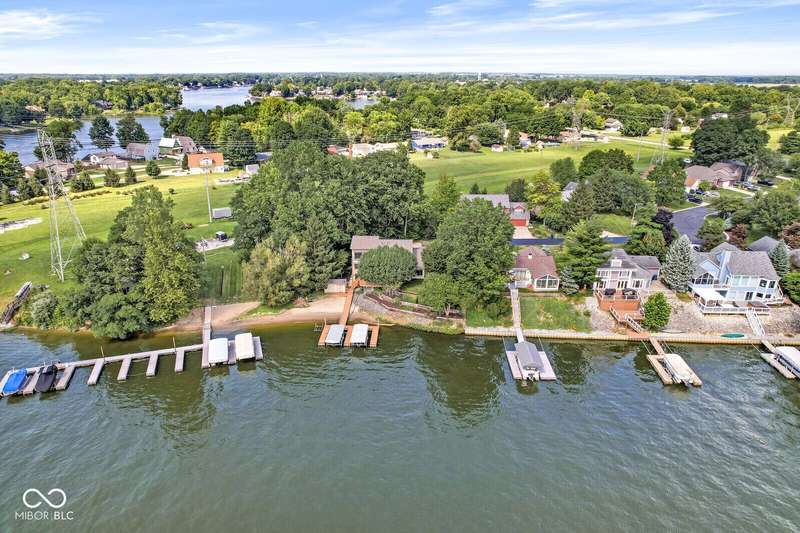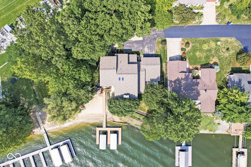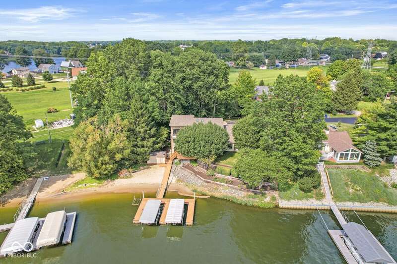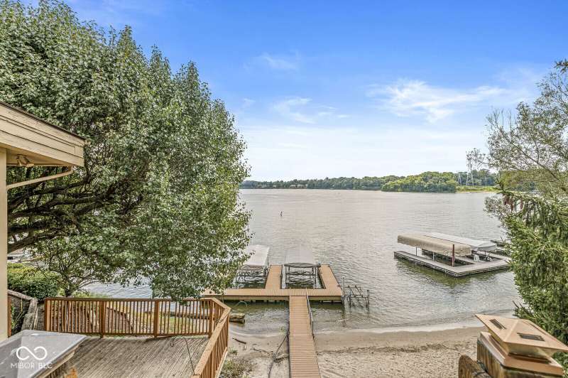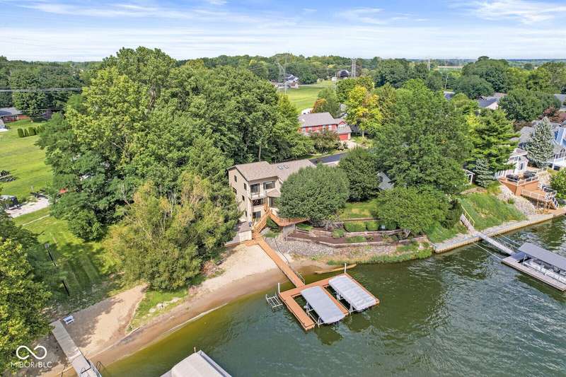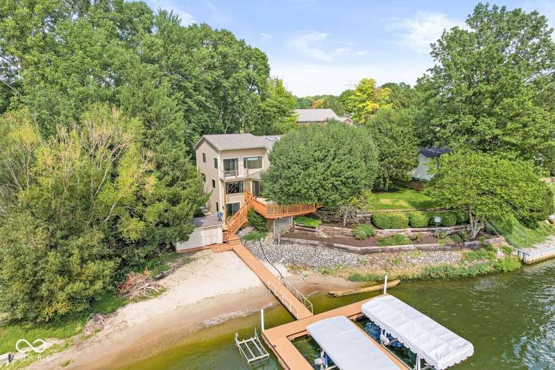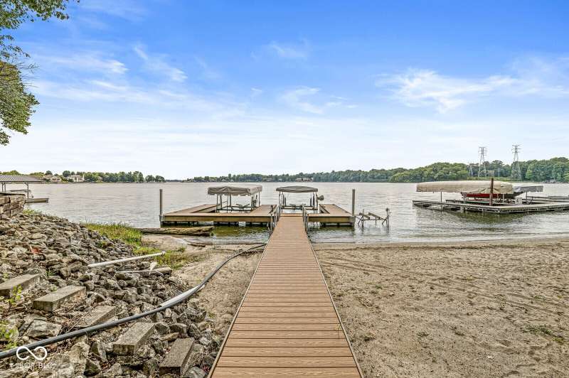 This beautiful waterfront lake home in Cicero has it all! Located on a quiet, private street you will enjoy 165 feet of lake frontage, 2 electric boat lifts, jet ski dock, composite wood walkway down to the composite wood boat dock (36 x 24) featuring 2 U-shaped boat slips with canopies and automatic lifts. 4 Bedrooms/4 full baths including 3 primary bedrooms with ensuite baths (one on the main level and two upstairs). Looking for a place to take in the views? Plenty of options with a deck on the main level, deck off the primary bedroom upstairs, concrete patio off of the sunroom, or lounge at the beach area next to the dock. 2-story great room features a wall of windows with motorized blinds and provides the perfect spot to watch the sun set. 4th bedroom has built-ins and would make a great office. Kitchen with newer stainless steel appliances and Corian countertops has 2 adjacent dining areas. Lovely den (17x15) with double doors off of the kitchen. 2 car attached garage with additional work shop area and concrete ramp leading down to one car garage. Original owners lovingly cared for this home and it is ready for new owners to love it!