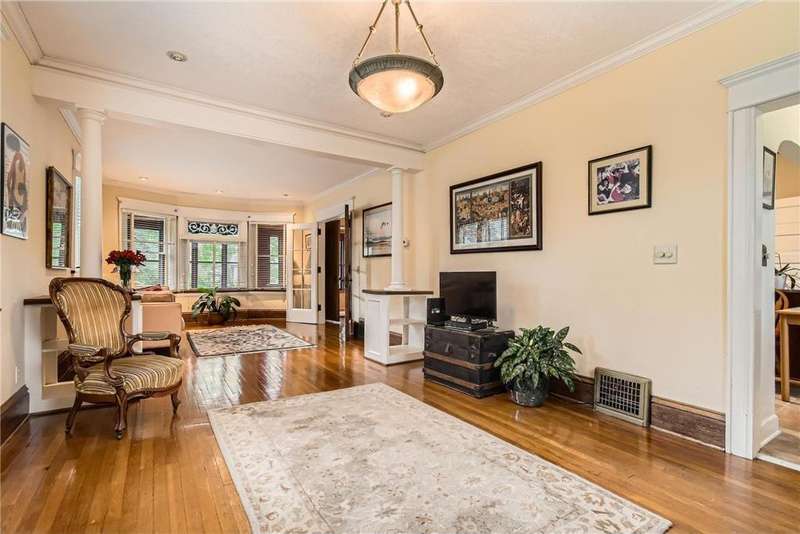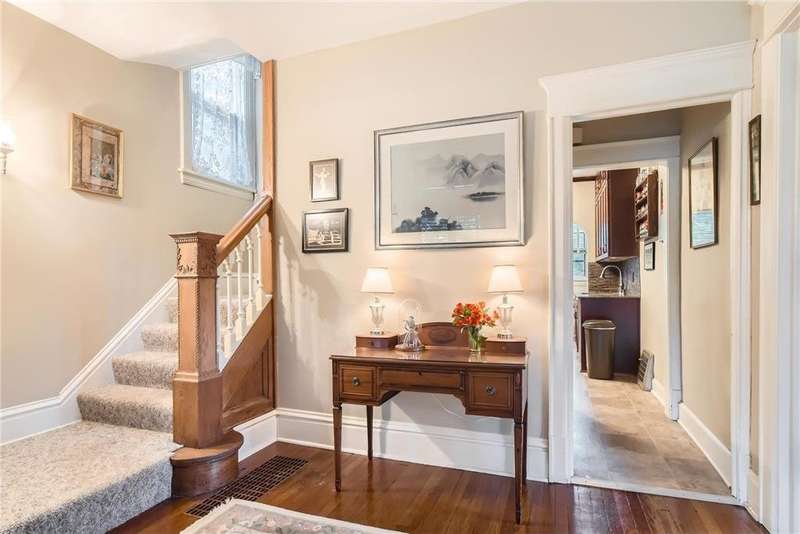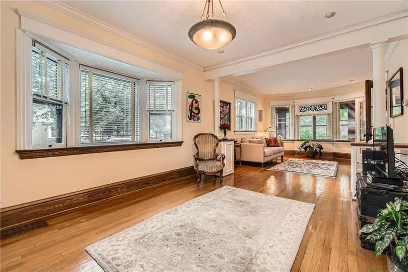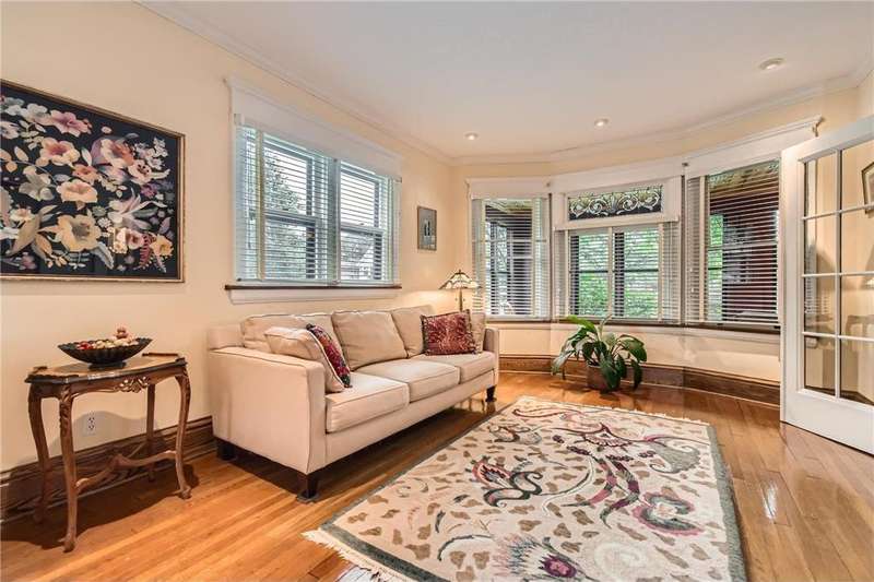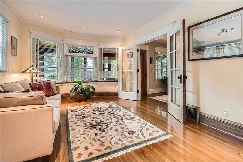 Experience the refined charm of this distinguished 2.5-story residence, gracefully situated in the highly sought-after Merriam Park neighborhood on a corner lot. This beautiful-looking home is a harmonious blend of historic craftsmanship and contemporary convenience. Showcasing several original architectural details, this elegant home features four bedrooms on the second level. A beautifully appointed bathroom on the second level offers a whirlpool tub, beautifully tiled, creating a spa-like retreat. There is a separate walk-in shower on the lower level. Hardwood floors flow on the first level, and very nice hardwood floors continue onto the second, adding warmth and character to every room. Upon entering through the most beautiful front porch, you're welcomed by a grand foyer, leading to a spacious formal living room on one side, which leads to an inviting dining area. The eat-in kitchen offers abundant space for culinary creativity. Home has a new roof on house and garage. There is a newer 2.5 car garage. The yard is a tranquil outdoor oasis featuring plantings and serene garden views from every angle, it's an entertainer's dream. From its classic architectural allure to its modern comforts, this beautiful home offers a rare opportunity to own a piece of history, where timeless design and elevated living come together effortlessly.