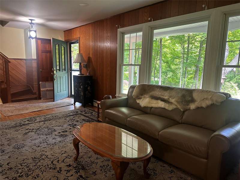 This is the loveliest country home you'll find! The beautiful 3-acre lot is a picture-perfect fresh air delight. No neighbors behind you with about 250 acres of undeveloped woods, rolling hills, and wildlife. No neighbors in front of you either, just a babbling stream that sings to your delight as you side on your "just re-done" front porch. Wide yards and mature trees surround the house's front, sides, and back. Of course, the extra-long deck can accommodate all friends and family that will be visiting. When you are inside, sunshine and nature are framed peacefully in the oversized windows. The kitchen is well equipped for any chef! A 6-burner stainless steel stove with outside exhaust, a new stainless steel Frigidaire Galley refrigerator, and updated cabinetry are yours for the asking! The living room hosts the brick-front wood-burning fireplace for the chilly days and nights ahead, and wide plank refinished hardwood floors. Two - 1st floor bedrooms with hardwood floors, a laundry room, and a full bathroom make it easy for 1-level living. The 2nd floor is one gigantic room with a full bathroom, oversized windows, and access to the unfinished (and huge) walk-in attic.