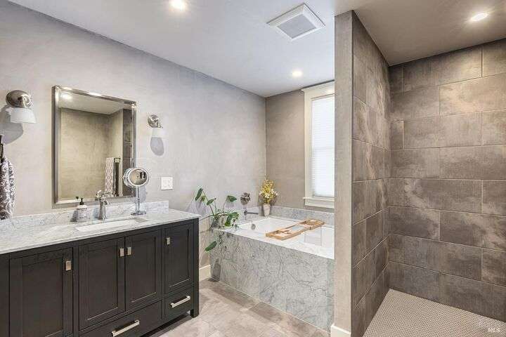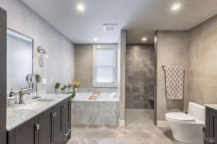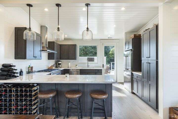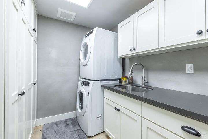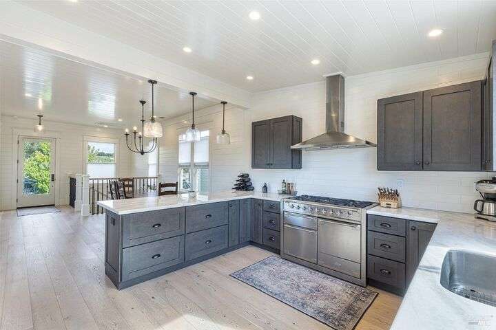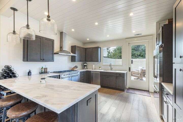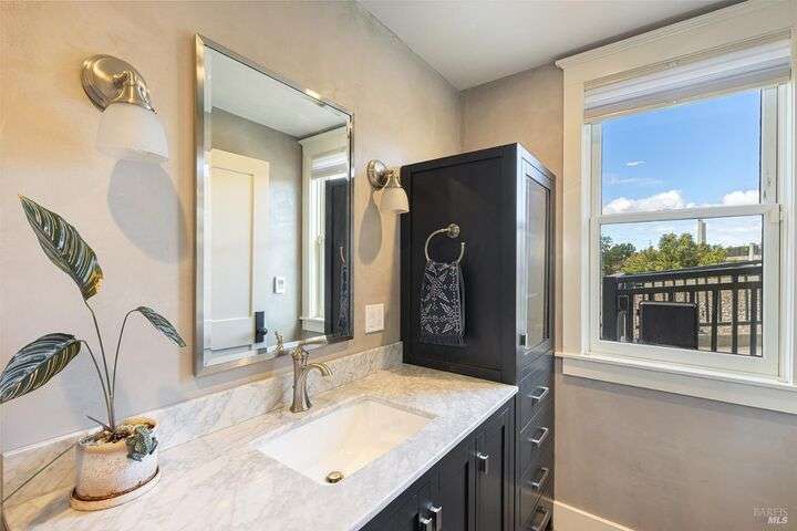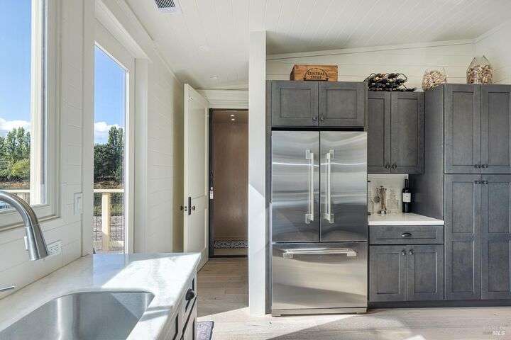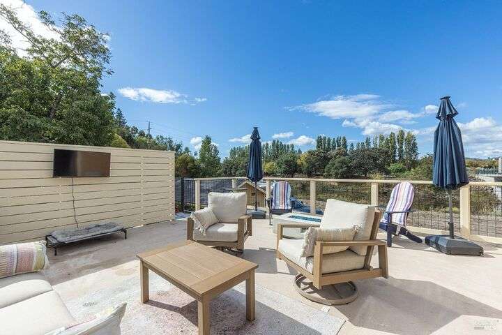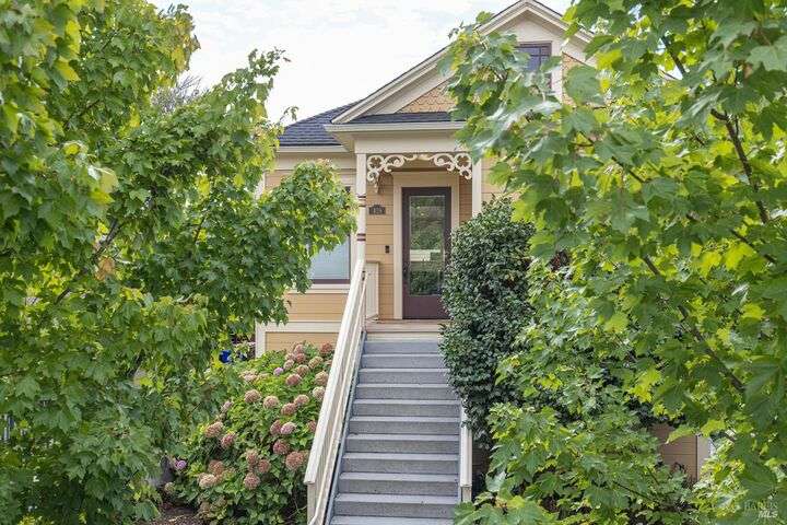 Experience the best of the Napa lifestyle at this historic Oxbow landmark property. Completely renovated in 2020 with permits for electrical, plumbing, and engineering, the Victorian farmhouse-style home features 3 bedrooms and 3 full baths with unobstructed views of the Napa River, CIA Copia, and Oxbow Market. Interior highlights include 10-foot ceilings, an elevator, shiplap siding upstairs, plaster walls downstairs, heated tile bathroom floors, and engineered wood flooring throughout. The stylish island kitchen opens to a spacious deck that extends over the 2-car carport with car charger. A detached single-car garage adds further parking, storage, or workshop potential. Professionally landscaped with irrigation and outdoor lighting, the grounds complete this turnkey property. Adding even more value, the home offers an assumable VA loan for qualified buyers. Check with the City of Napa for potential uses. Zoned CL (Commercial Limited) with residential allowance, this unique property is not just residential and it offers rare flexibility for live/work, boutique business, or private enjoyment.