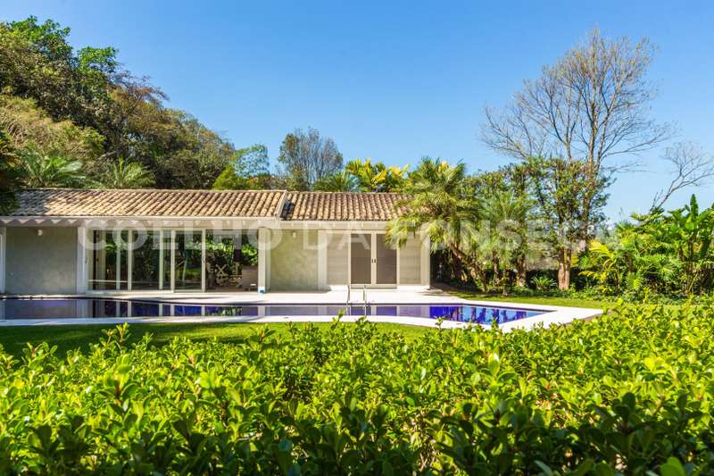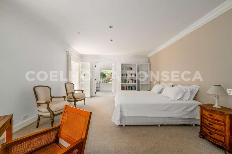 Casa maravilhosa em terreno indescritível de 4.400m². Com estilo clássico e elegante essa casa é um convite ao bem viver. Suas suítes são espaçosas sendo a master muito ampla com excelente closet, além de sala anexa para leitura e varandas com vista para o verde. Suíte de hóspedes com entrada independente, além de suíte com ante sala no piso térreo. Escritório. Casa anexa com academia e sala de banho, voltada para a piscina. Quadra de tênis oficial e tabela para jogar basquete. Atelier de costura e artes. Cozinha com sala de almoço e copa anexa. Gerador. Rua exclusiva fechada e sem saída com sistema de segurança avançado.
