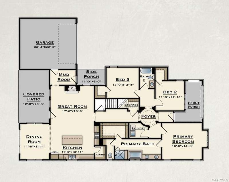 New Home in Pike Road! $15K Builder Incentive and Move-in Ready by the Holidays for Penn Meadows new homes under construction or Presales! The Sheffield A is a unique one-level, 3-bedroom 2.5 bath home that offers tons of character! From the story book cottage exterior to the detailed interior features, this one is a favorite. The large circular foyer welcomes you into a gallery hallway with added trim details and leads to the great room with 10 ft. vaulted ceilings, a gas fireplace, and a view to your 12x21 covered back patio. The kitchen has vaulted ceilings as well and features an oversized work island with enough room for extra seating, quartz countertops, an upgraded gallery appliance package with 5-burner gas range/center griddle & air fryer settings, matching cabinet vent hood & large walk-in pantry. It also adjoins to the bright and spacious dining room. The half bath for guests is tucked around the corner with an access door to the quaint side porch area for convenience. The master suite has added LVP flooring & features a bright bay window accent. The master bath has double vanities, a walk-in shower, separate garden tub, built-in linen shelves and a huge walk-in closet. The spare bedrooms both have large walk-in closets and there's stairs to an unfinished attic space upstairs for a ton of additional storage! The rear loading attached garage provides a long stately driveway with ample parking. Lot#72 backs up to a wooded area for a private backyard view and a full irrigation system has been added to this home. High Energy standards with Low-E Windows, Tankless gas water heaters, Smart home features, Architectural shingles & gutters on every home plan are our standard! Please contact me for selection information or incentive details. Come take a look and you’ll feel the difference this charming neighborhood offers. Penn Meadows is less than a mile to the new Publix Shopping Center and easy access to Pike Road Schools, East Chase Shopping, and I-85.