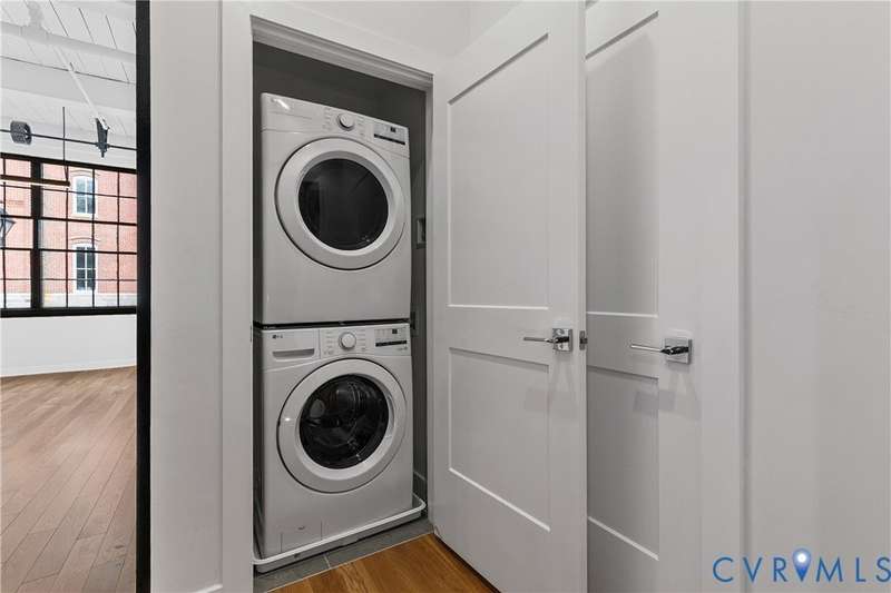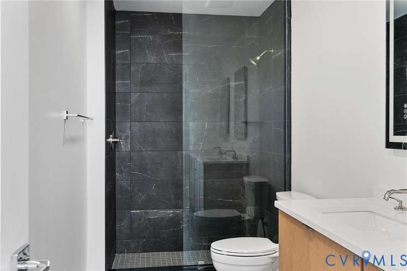 The Broom Factory, originally home to the Richmond Broom Manufacturing Company, is a 1921 landmark that has been masterfully reimagined and renovated into 12 custom condominiums with generous layouts. The building's historic character has been preserved but redesigned to deliver every modern comfort. Step inside and discover soaring ceilings (up to 14 feet), enormous steel casement windows flooding each home with natural light, and real white oak flooring throughout. This particular unit is on the first floor and has one bedroom, one full en suite bathroom and a powder room as well as an open concept Living room and Kitchen with incredible light. Each residence features high-end finishes, including granite countertops, designer lighting, walk-in closets, double vanities and LG appliances, plus full-size washers & dryers and all-new systems. Amenities include covered & secure parking for each unit, dedicated basement storage, elevator, bike racks and a dog/kayak/cooler washing station. The rooftop deck delivers sweeping views of the James River and Richmond's skyline. Perfectly situated in the heart of Shockoe Bottom-just steps to Taylor's Hill Park, the Canal Walk, VCU, museums, and some of Richmond's best restaurants-2201 E Main Street offers the rare opportunity to own a piece of history while enjoying a truly modern lifestyle.
