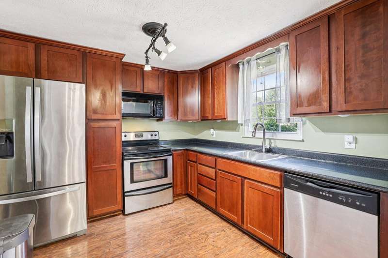 100 percent Financing Available Through USDA/Rural Housing! This immaculate home is move-in ready with updates inside and out. The interior features maintenance-free floors, neutral dcor, and ample natural light throughout. The updated kitchen boasts stainless steel appliances, a tiled backsplash, and a stylish barn door leading to an oversized pantry. Both bathrooms have been remodeled with solid surface showers and custom-built vanities. Added touches include custom built-in shelving for storage and display. Step outside to an enormous, fenced backyard complete with a wooded view, fire pit, and storage shedperfect for entertaining or relaxing. Major updates include a newer HVAC system and a brand-new dimensional roof, giving peace of mind for years to come.