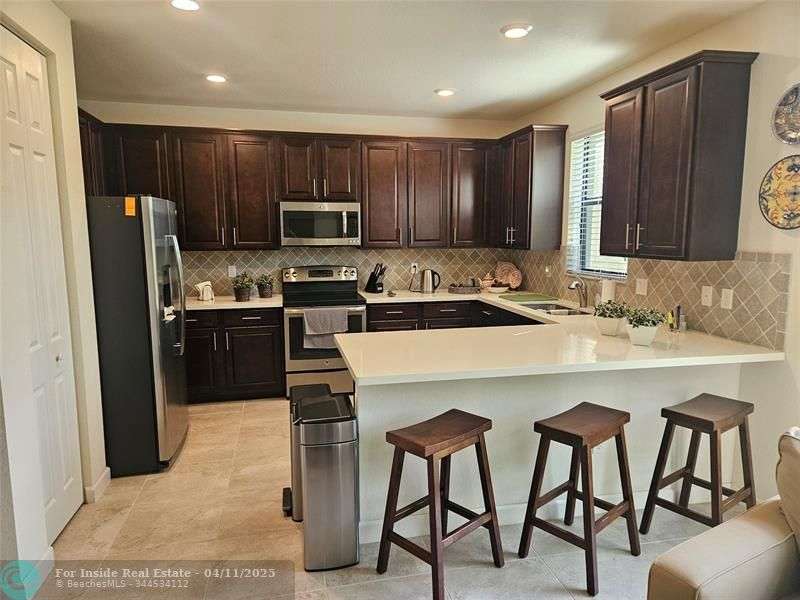 Don't miss out the opportunity to call this beautiful townhouse your home away from home!Discover modern living in this stunning 3-bedroom, 2.5-bath townhome fully furnished seasonal rental up to 6 months, or annual unfurnished/furnishes.Spacious kitchen with quartz countertops, stainless steel appliances. Second floor offers a laundry room with a washer and dryer, walk-in closet, and stylish bathrooms with quartz vanity topsOne car garage and pavers driveway with room for two cars. Located closed to all shopping, restaurants, movie theater, 4.5 miles to the beach and more.
