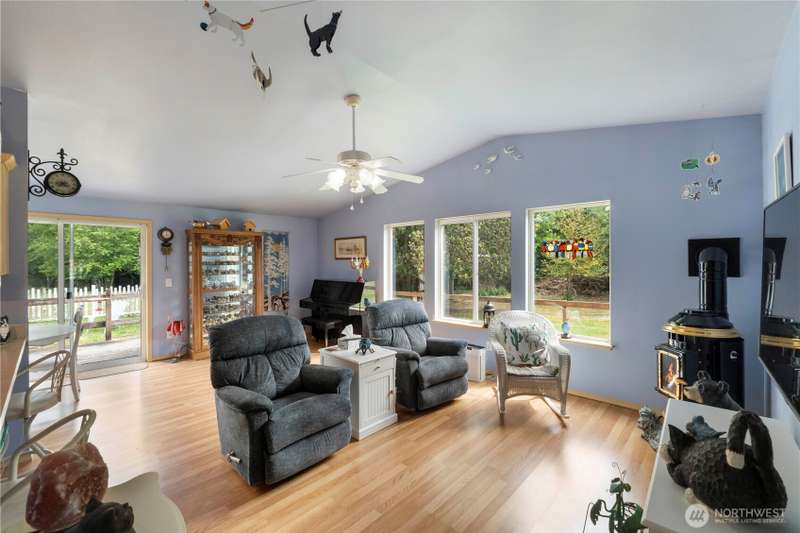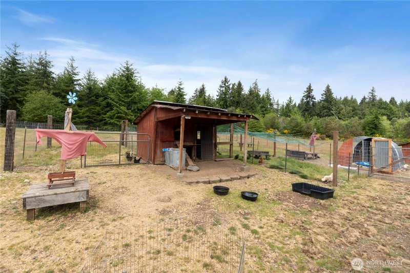 Turn-key 4BR/3BA custom home with a 3 bdrm ADU Rambler on a fully equipped hobby farm! Enjoy 3,000 sq ft of updated living space w/AC, jetted tub, office, digital climate controls & ceiling fans in all BRs. Outdoors: 7.35 Acres, 3 fenced pastures, horse round pen, ATV trails, chicken coop, duck enclosure w/plumbed pool, 200 sq ft shed, RV hookup, EV-ready garage & generator plug-in. Relax w/water feature, hot tub & fire pit. Gated entry w/remotes & package slide. ADT security, high-speed DSL. ADU w/ 1200 sq ft, 3BR/2BA, garage & fenced yard. Prime location—school bus stop at driveway, 2 min to Evergreen Elem, 11 min to Key Center, 29 min to Costco, near Joemma & Penrose Parks. A rare blend of comfort, space & rural charm!