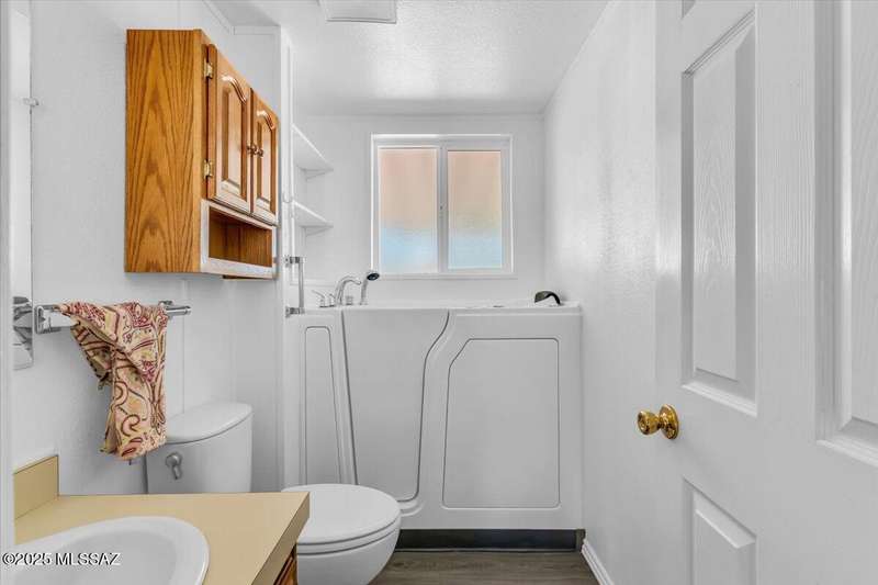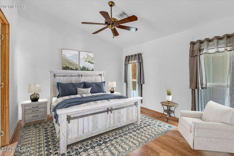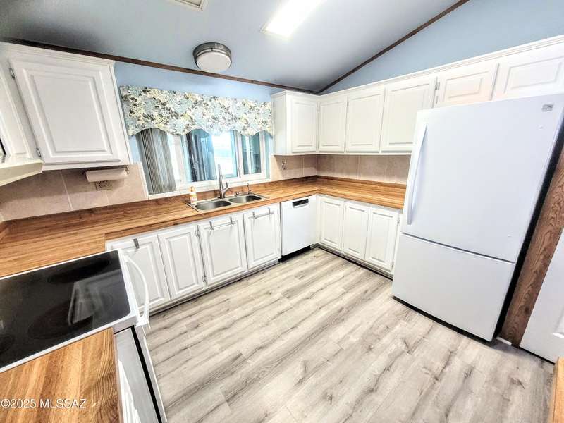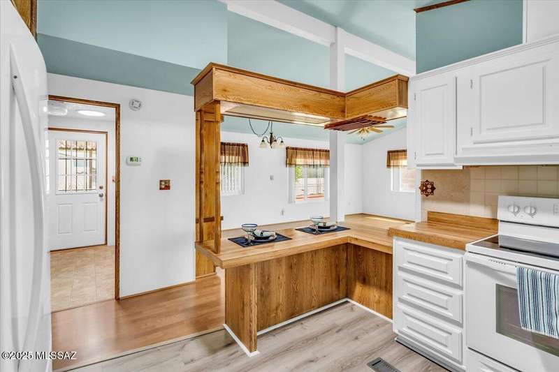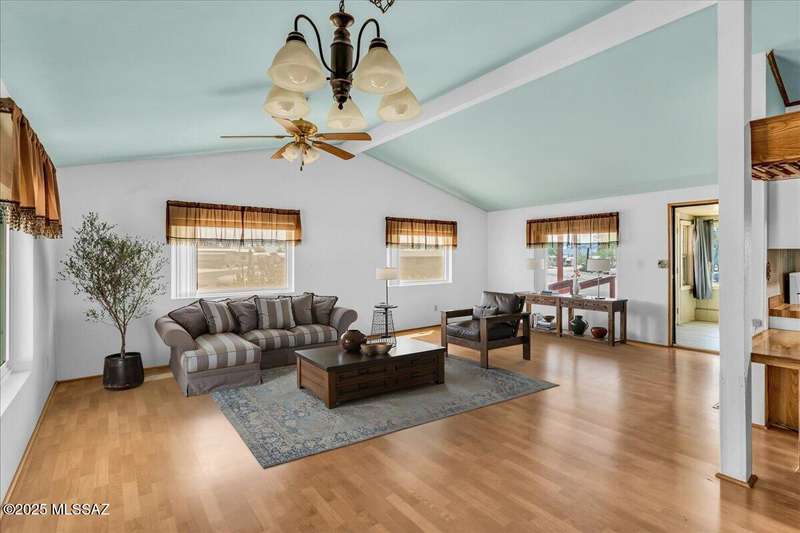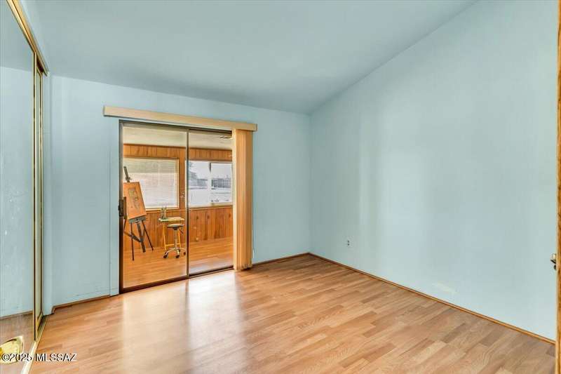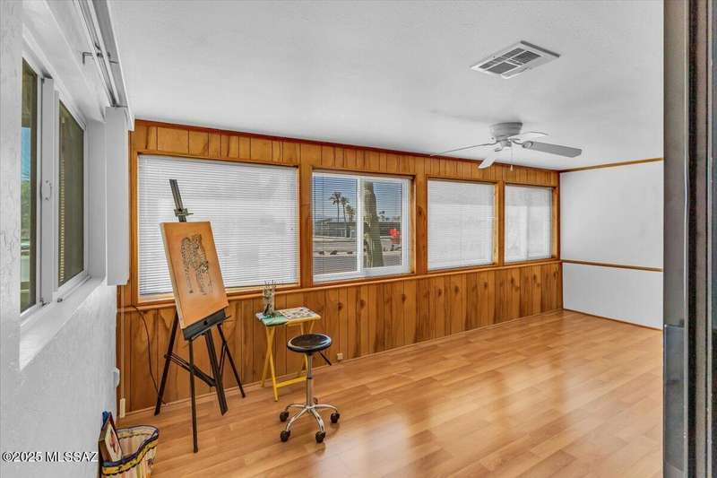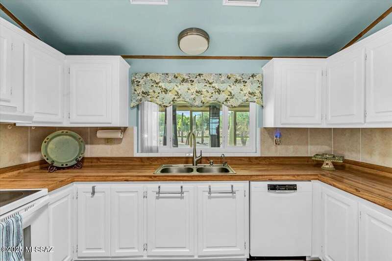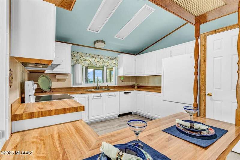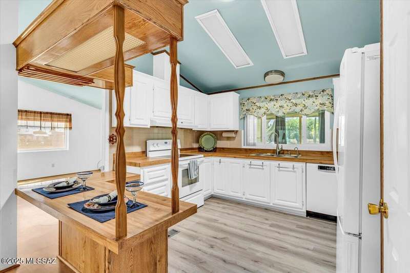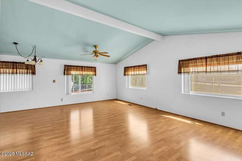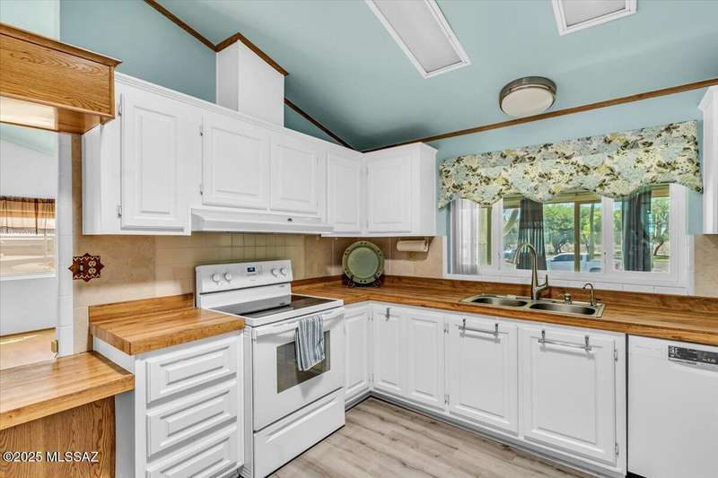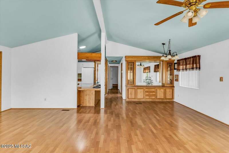 On a desirable corner lot, this charming home offers mountain views and a prime location directly across form the HOA facilities. Updated interior featuring newer windows that fill the space with natural light. The kitchen boasts modern cabinets, the hall bathroom is equipped with a walk-in tub. The primary suite offers a nice size with a wall of cabinets for abundant storage. Enjoy Arizona living year-round in the two separate heated and cooled Arizona rooms, perfect for relaxing or entertaining. The low-maintenance stucco exterior and two sheds- large enough for a golf cart garage. The property is part of a community with unlimited free golf and an impressive list of amenities, including two pools, a spa, a workout facility, shuffleboard, pickleball, tennis courts and you own the land.