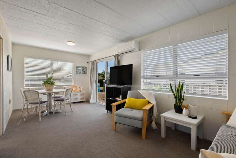 Welcome to this charming two-bedroom unit perfectly positioned in one of Waihi Beach’s most sought-after streets at the north end. Offering a light filled and airy ambience, this home is ideal for those seeking a relaxed coastal lifestyle or a lock and leave. Step inside to discover an easy design with open-plan kitchen with living and dining, seamlessly blending functionality and style. Opening to a small courtyard, perfect for your morning coffee. The wet area shower and combined laundry add to the convenience, ensuring a low maintenance living experience. With one designated parking space, a garden shed and set within a boutique block of only four units and on a unit title, this property offers both a prime and handy location to all the popular amenities and the gentle waves of Waihi Beach. Whether you're a first-home buyer, downsizer, or investor, this unit presents an incredible opportunity to secure a slice of Waihi Beach’s coastal charm. Don’t miss out – contact Rosina@Barfoot and Thompson today to arrange a viewing!