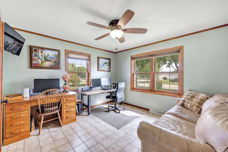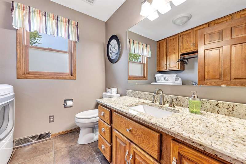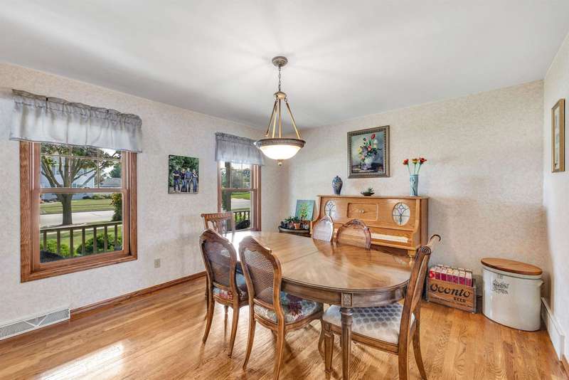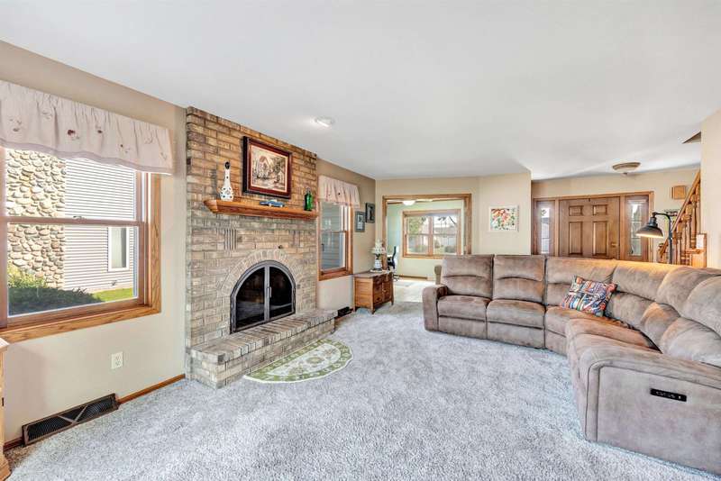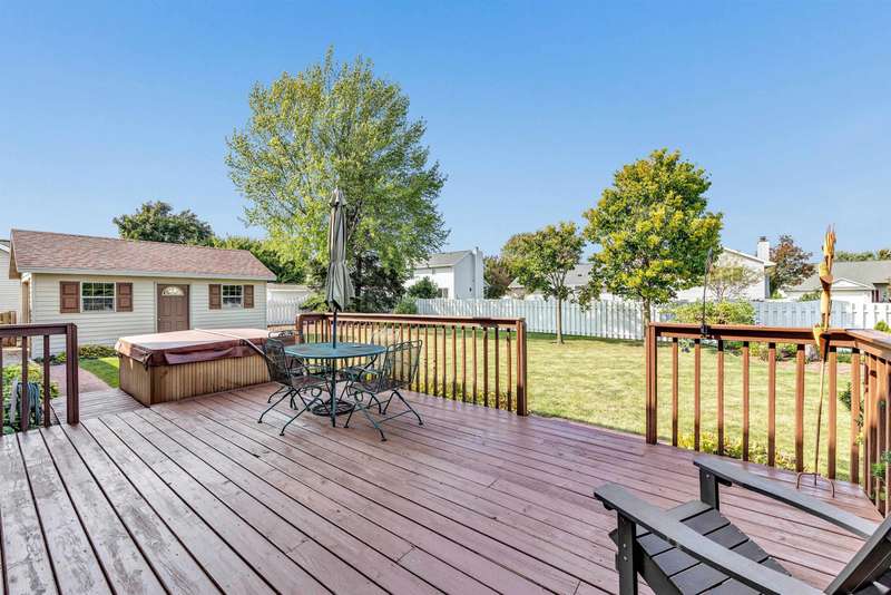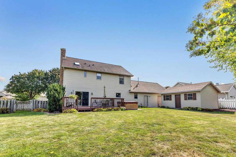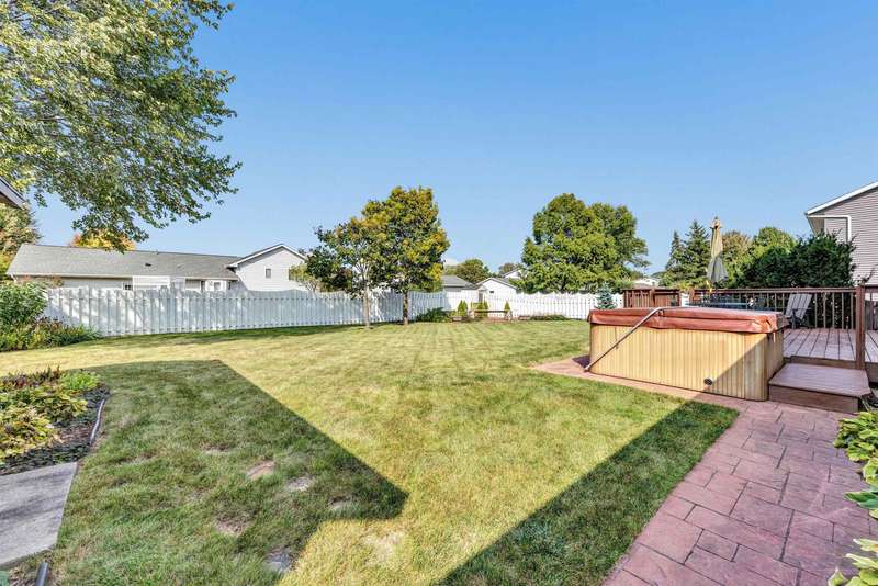 Welcome to this well-maintained home in a desirable West DePere location, conveniently close to schools & highway access. Updated kitchen is a standout, featuring an island, tile backsplash, porcelain tile flooring. A formal dining rm with HW flr sits just off the kitchen, perfect for gatherings. Spacious living rm offers a cozy wood-burning f/p & patio doors that lead to private backyard with a deck & relaxing hot tub. Additional main floor amenities include a home office & a laundry/half bath combo off the garage entrance. Upstairs, the primary suite impresses with a cathedral ceiling, 3 closets & updated private bath. Granite ctops in all baths. Finished LL provides 2 versatile multi-purpose areas. 2 stall attached garage with rear garage door that opens to a detached one stall garage.