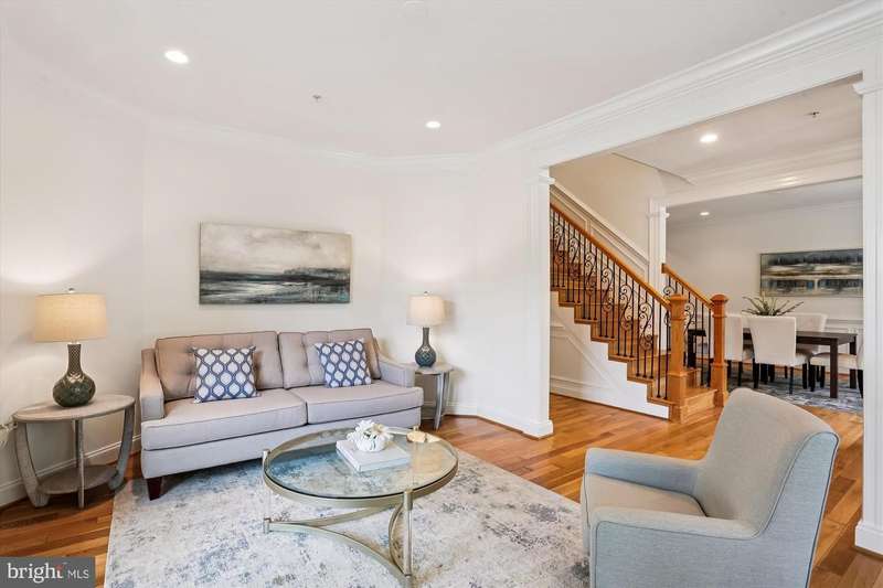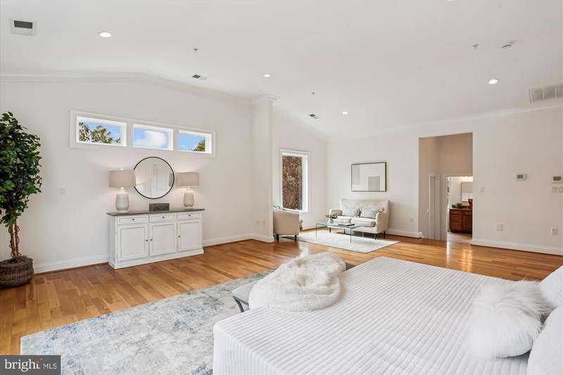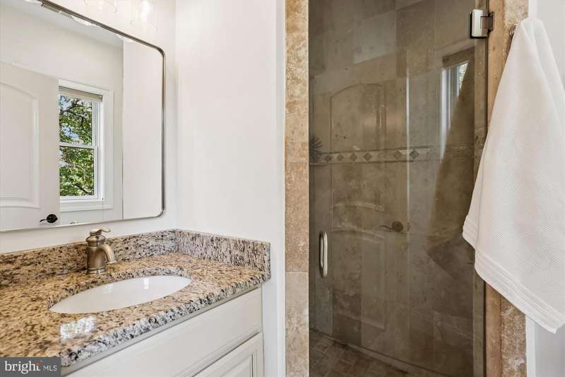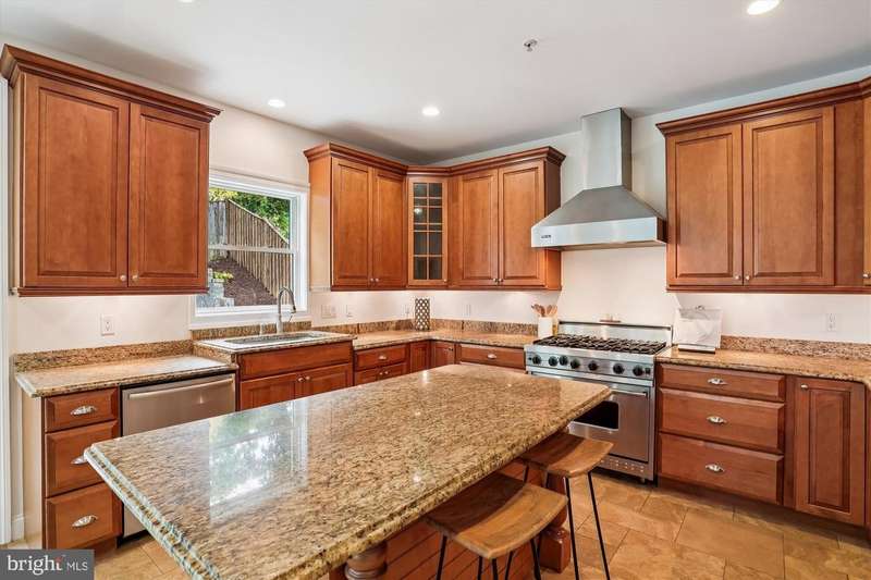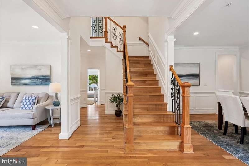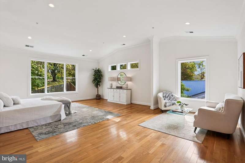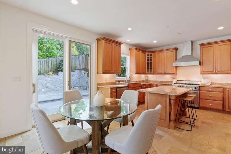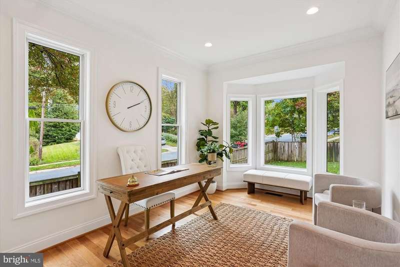 Welcome to this special home located just minutes from NIH, Walter Reed Medical Center, downtown Bethesda, I-495, and I-270. Ideally sited on a corner lot across from the entrance path to Rock Creek Park, the home is framed by mature trees and features an elevated stone-accented front porch that sets the tone for the craftsmanship inside. Step into the main level and you are welcomed by a stunning great room with a soaring 20- foot coffered ceiling, dramatic picture windows that flood the space with natural light, and a natural stone gas fireplace that anchors the room. The open floor plan connects seamlessly to the gourmet kitchen, where Viking appliances, a large center island, custom Kraftmaid cabinetry, and generous eat-in space make everyday living and entertaining effortless. A butler's bar with wine fridge and a functional mudroom off the true two-car garage add convenience, while the dining room, a bright separate living/music room, and a private office with oversized windows provide both formal and flexible spaces. A powder room and a laundry room with a new washer/dryer (2023) complete this level and sliding glass doors open to a beautifully hardscaped patio with custom stonework, firepit, and private hot tub area, all within a fully fenced backyard. Upstairs, the primary suite is a retreat of its own with vaulted ceilings, a separate sitting area, and not one but three walk-in closets. The spa-inspired bath showcases floor-to ceiling stonework, a large shower, separate jetted soaking tub, dual vanities, and a private water closet. Three additional spacious bedrooms complete the second floor: two share a Jack-and-Jill bath while the third offers its own en-suite bath and walk-in closet. The third floor reveals another large and bright bedroom suite with a giant walk-in closet and private full bath, ideal for guests, an au pair, or a teen retreat. The walk-out lower level is equally impressive, with a sunlit entertainment space anchored by a custom stone wet bar, a dedicated movie room with a giant screen, and a large guest bedroom with yet another oversized walk-in closet and full bath. Multiple storage areas provide room for everything. Built with extremely solid construction and designed with thoughtful details, the home features true hardwood floors throughout, double staircases, crown molding and nine-foot ceilings on every level, natural stone finishes in every bathroom, central vacuum (including in the garage), an alarm system, and fresh paint throughout. With seven walk-in closets and endless storage, the home blends high-end luxury with practical everyday living. From the stone-based front porch to the fully fenced yard with gates, firepit, and hot tub retreat, this property is as remarkable outdoors as it is inside. With its blend of timeless craftsmanship, exceptional design, and an unbeatable location, this Bethesda home is truly a must-see!