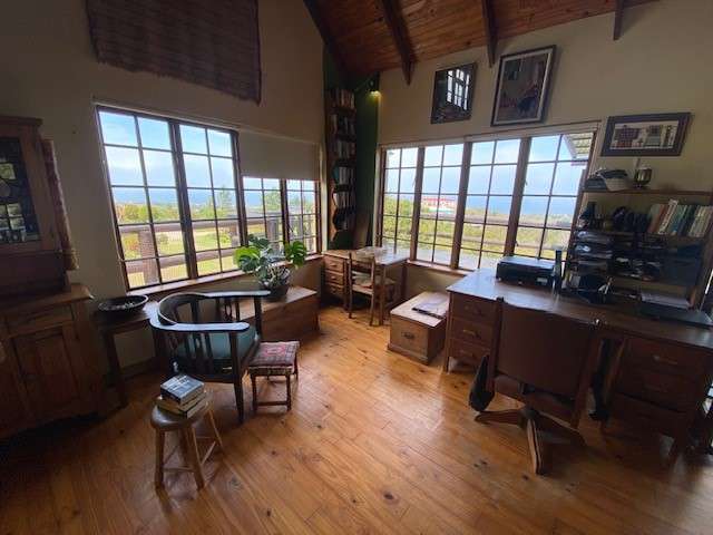 For the privileged few, this unique family home is located in Groot Brakhoogte, offering incredible views of nature and the ocean. Wake up to the beautiful sounds of birds and nature, with uninterrupted panoramic views overlooking Grootbrak, the sea, and go to bed with the twinkling lights of Hartenbos and Mossel Bay. Entertain your friends and family in the lovely braai room, open-plan living area, and open-air balcony. Two of the four bedrooms can be used as a flat, complete with its own bathroom and kitchenette. The property offers several extras, including a storeroom, studio, and free WiFi. The 7,178 sqm stand is zoned Agri-2, providing various possibilities for an additional home or nature-based opportunities. Living in this area, you’ll enjoy sunny beaches, boat trips, walking and cycling routes, shopping malls, excellent medical facilities, and a well-run municipality. George Airport is just a 10-minute drive away. Don’t think too long!